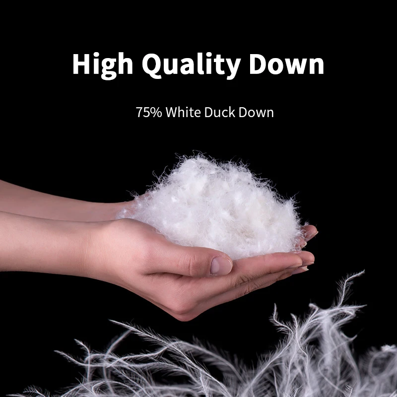Ткань: 75% белый утиный пух (вес наполнителя 24 г) / DuPont удобный эластичный хлопок