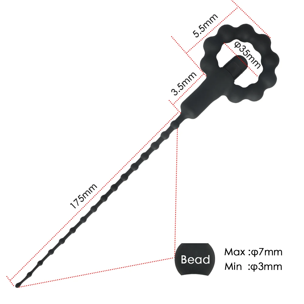Материал: АБС + силиконОбщая длина подошвы 26 см, диаметр кольца составляет 3,3 см, длина щупа является 17,5 см, и шарик диаметр составляет 0,3-0,7 см.2 батарейки LR41 (в комплекте)Одна частотаУретральный расширитель, стимуляция