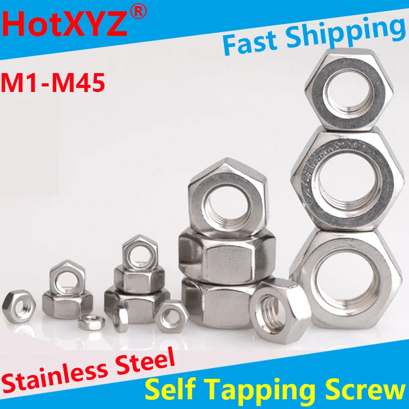 Шестигранная гайка 316 304 201 из нержавеющей стали DIN934 M1 2 3 4 5 6 8 10 12 14 16 18 20 22 24 27 30 36 39 42 45