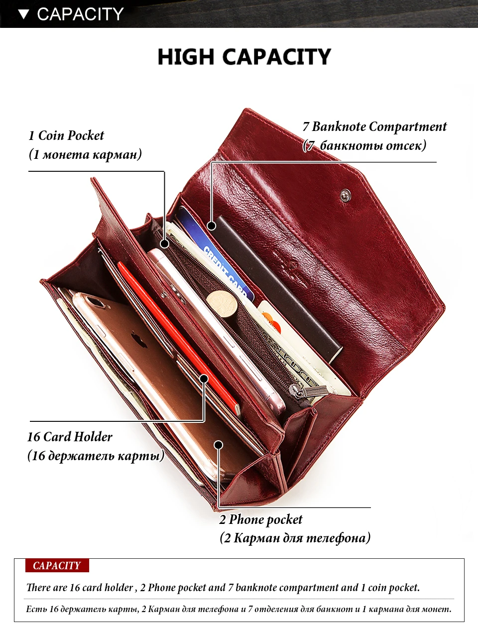 Модный женский кошелек KAVIS из натуральной кожи, длинный Стильный ...