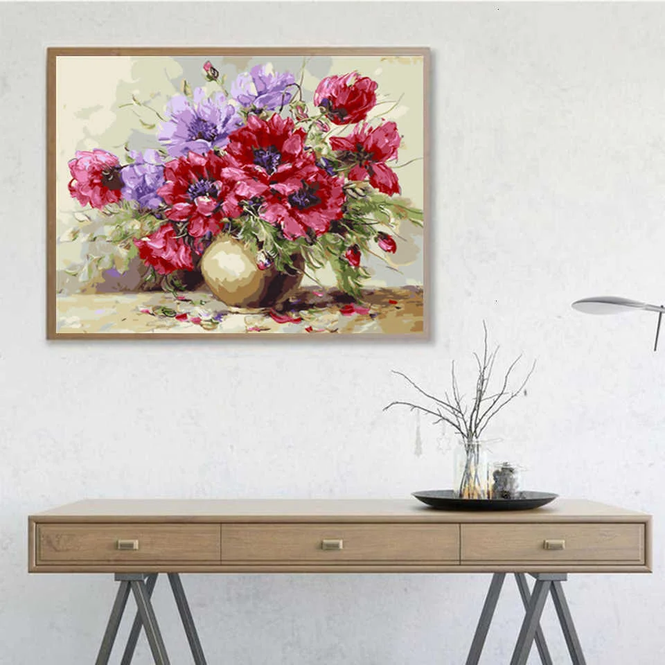 AZQSD Unframe картины по номерам Цветок украшение дома Акриловые Краски DIY картина маслом Краски ing по номерам ваза на холсте ручной работы