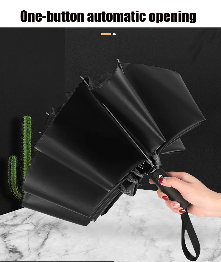 Удобное автоматическое включение/выключение в одну секунду: просто нажмите кнопку, она автоматически открывается, нажмите еще раз, чтобы сложить навес. Вам не нужно ждать вашего автомобиля, дождя, особенно когда идет дождь, во-вторых, чтобы открыть зонт, даже когда вы полны вещей в ваших руках.