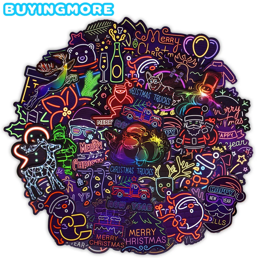 50 шт., рождественские неоновые наклейки, подарки для детей, Мультяшные животные, милый Санта-Клаус, водонепроницаемая наклейка для DIY гитары, холодильник, автомобиль