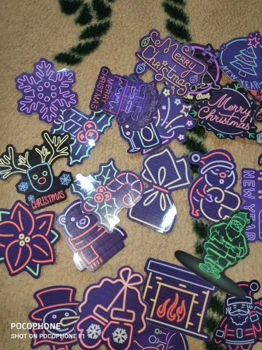 Посылка включает:50 шт рождественские неоновые наклейки. Не повторяется. (Это только неоновый светильник. Не может быть легкой в течение дня и ночи.)