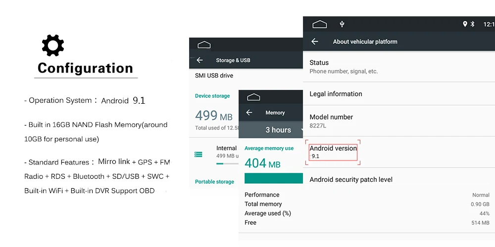 Напряжение: 12 В постоянного тока Процессор: A7 1.3GHZx4 Операционная система: Android 10,1 RAM: 1G/2G ПЗУ: 16 г/32 г Размер экрана: 9 ''2.5D емкостный экран Версия Bluetooth: 4,0 Внутренний: Wifi GPS: поддержка Радио диапазон: FM Разрешение: 1080P Формат аудио: MP3 MP2 AAC OGG FLAC APE WMA WAV RM AC3 Формат видео: AVI 3GP/MP4 MOV MPG MKV WMV RMVB Язык: китайский, английский, тайваньский, арабский, бразильский, русский, иврит, испанский, итальянский, французский, тайский, немецкий, японский, корейский, турецкий, чешский, иранский, венгерский, голландский, польский, шведский, украинский, вьетнамский, румынский, греческий, датский, финский