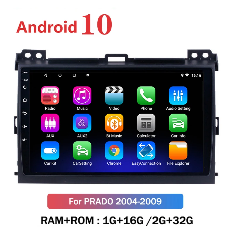 Автомобильный мультимедийный плеер, 9 дюймов, 2 Din, Android 10,1, для Toyota Prado 120 2004-2009, автомобильное радио, 2 Din, GPS-навигация, FM-камера, DVR, OBD