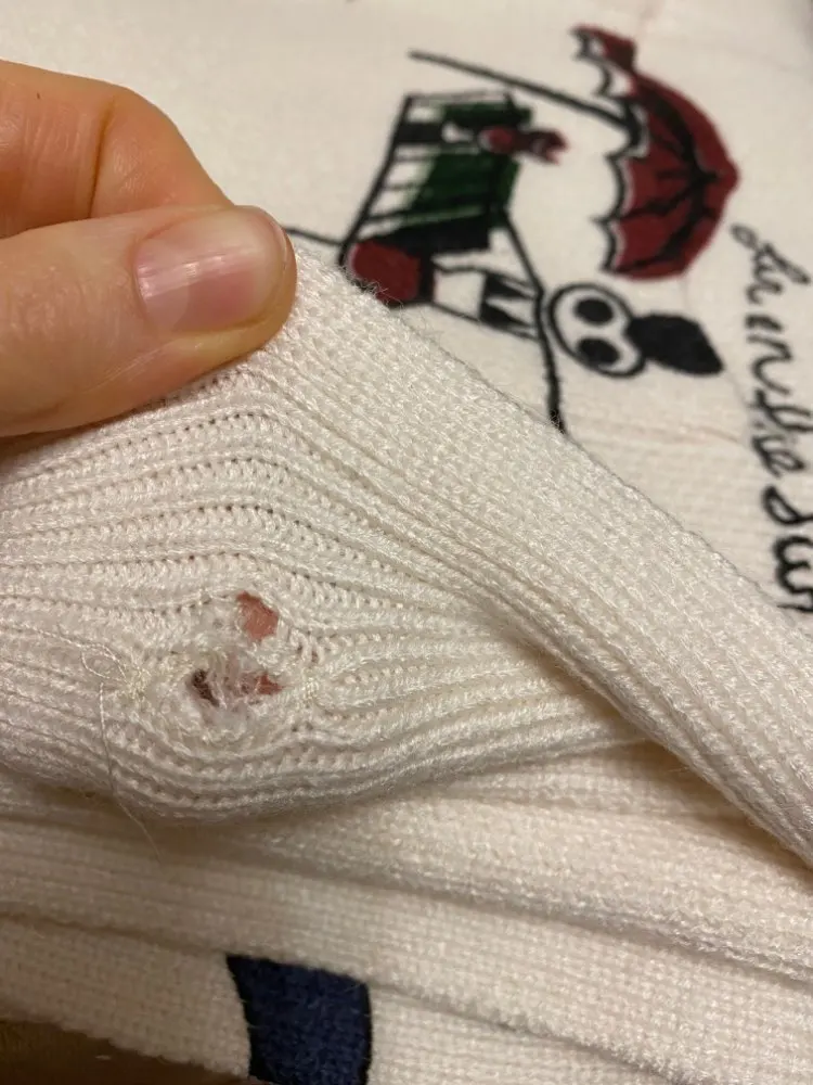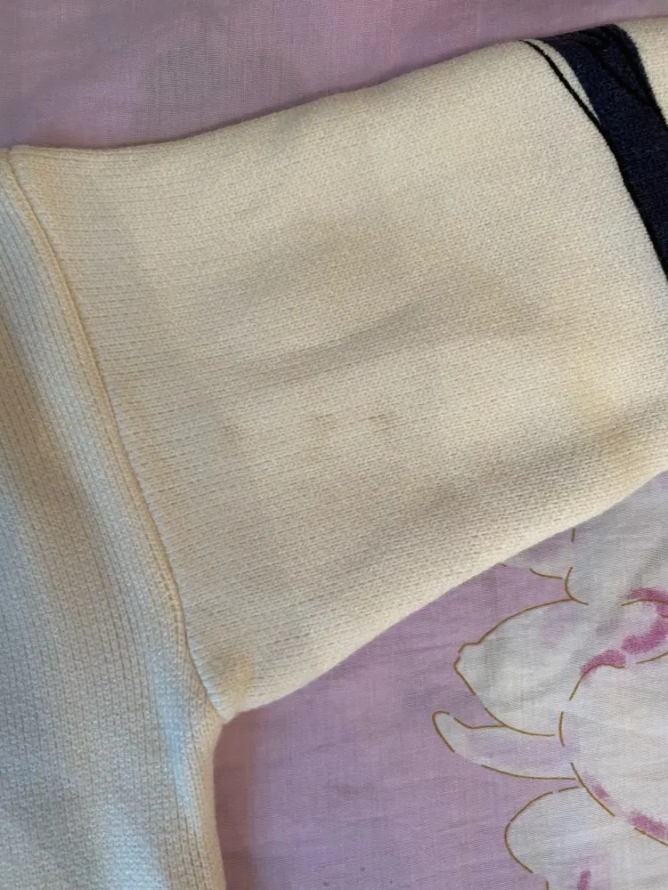 Рукава коротковаты, но кофта плотная, тёплая. Даже после стирки остался неприятный запах затхлости.