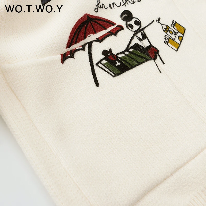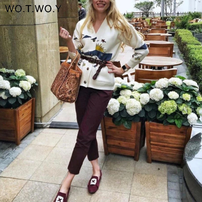 Женское Хлопковое трикотажное пальто WOTWOY, Осенний белый джемпер с V-образным вырезом и карманами, с принтом, на пуговицах, 2021
