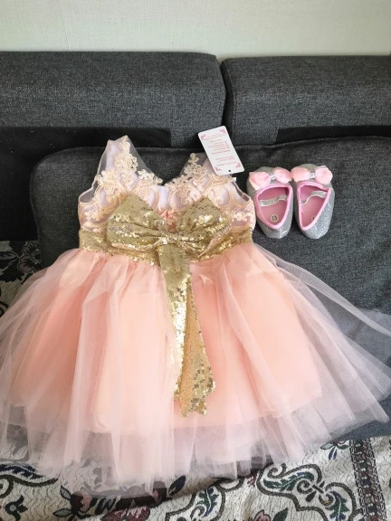 Красивое платье, а не очень красивое платье по такой низкой цене. Очень быстрая доставка. ≤ От 1 до 2 лет, дочь носит размер 86, sukieneczka на нем хорошо.