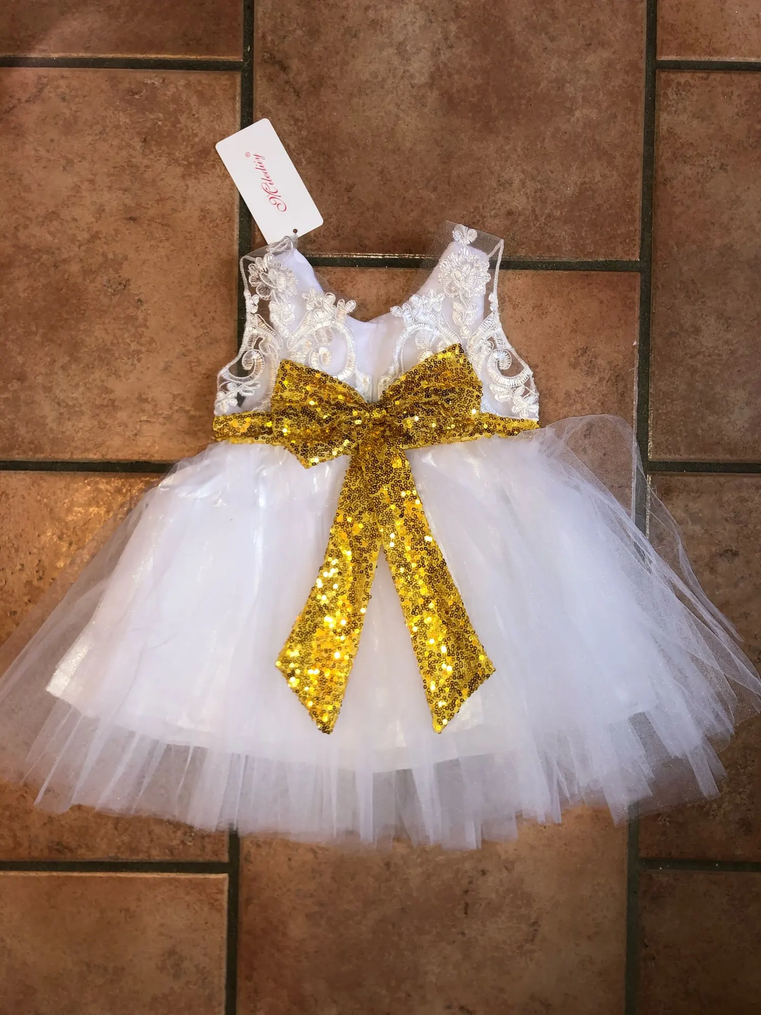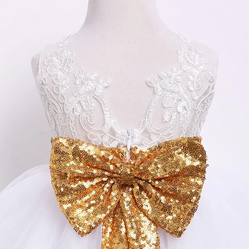 Кружевное платье с бантом и блестками для маленьких девочек, От 6 месяцев до 10 лет