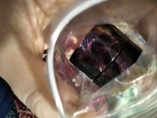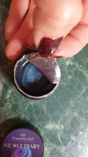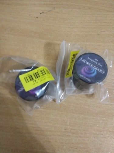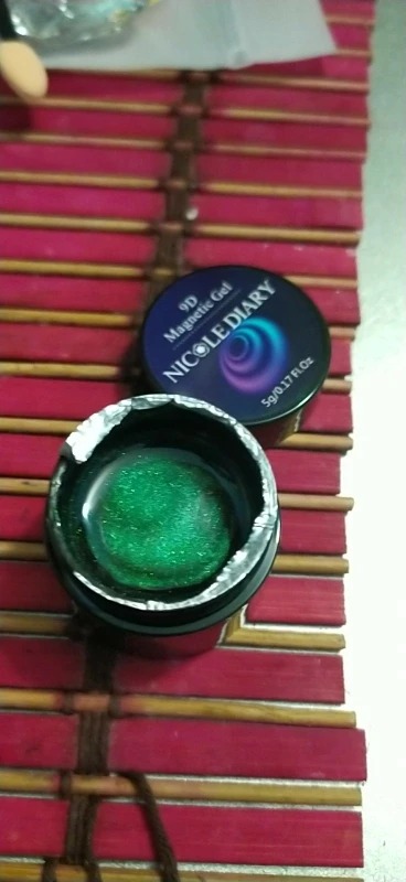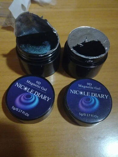 К сожалению баночка была распечатана и наполнена на 1/3. Как все не пролилось? Остаётся только догадываться почему так запаковали. За это снимаю две звезды. По качеству нареканий нет. Лак хороший, частички отлично реагируют на магнитик.