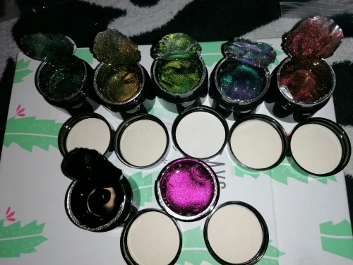 Заказ прибыл очень быстро, но есть некоторые замечания. Баночка, естественно, с двойным дном, причём дно полукруглое, на фото наполнение в самом глубоком месте (хотя у продавца и заявлено всего 5гр). Кошка очень красивая, в тонкий слой ложится превосходно, на магнит реагирует очень бодро. Только в каком месте там 9д - не ясно)) Обычная розовая кошка. В баночке при перемешивании проскакивает жёлтый отлив, но на выкраске мне его поймать не удалось. В общем - отличная обычная красивая кошка)