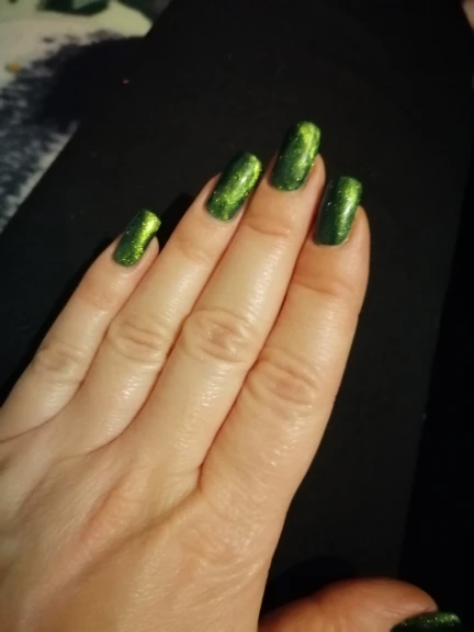 Лак красивущий!!! Переливается и блестит. Хорошо реагирует на магнит. Наносила на типсу. В носке не пробовала. Заказ шёл месяц и неделя. Не ослеживался. Закажу ещё. Всем рекомендую! Продавцу, спасибо!