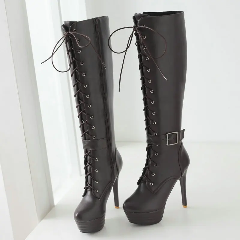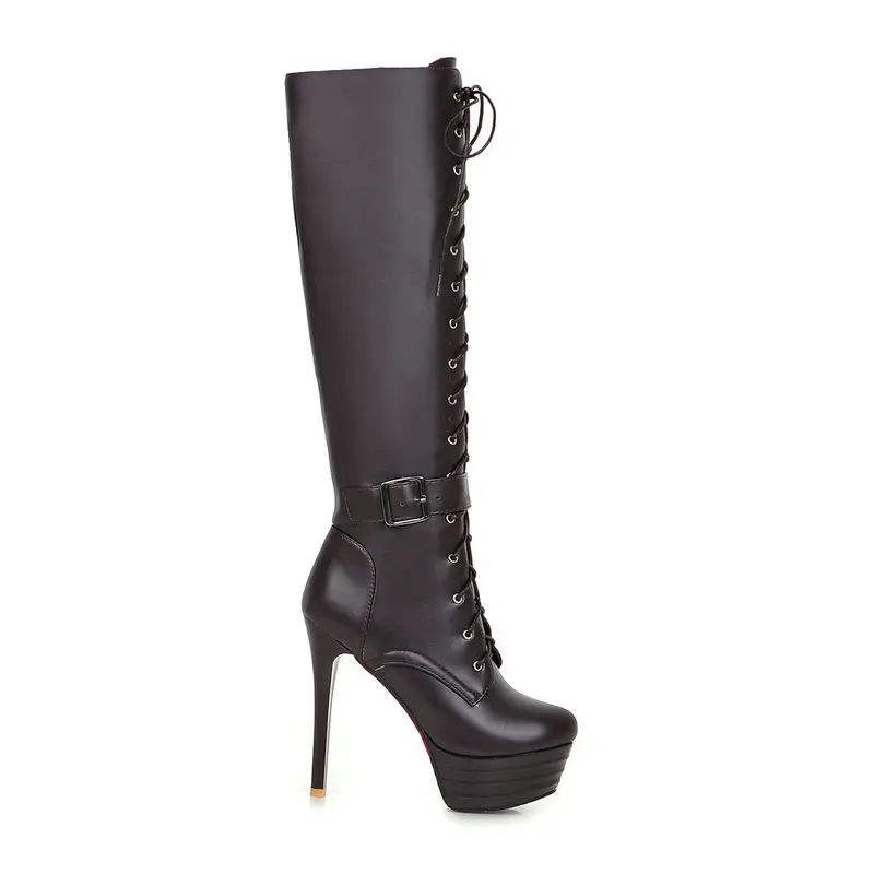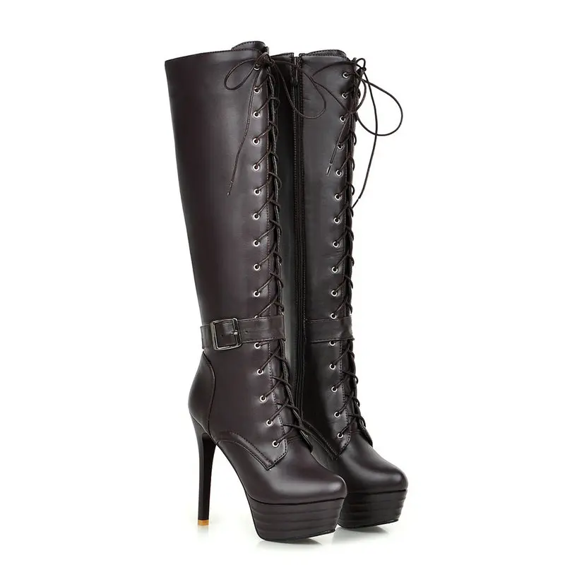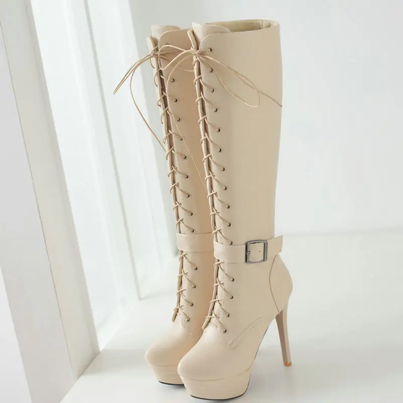 Женские сапоги на платформе, высокие сапоги до колена на очень высоком каблуке, с плюшевой подкладкой и пряжкой, на молнии, Осень-зима 2019