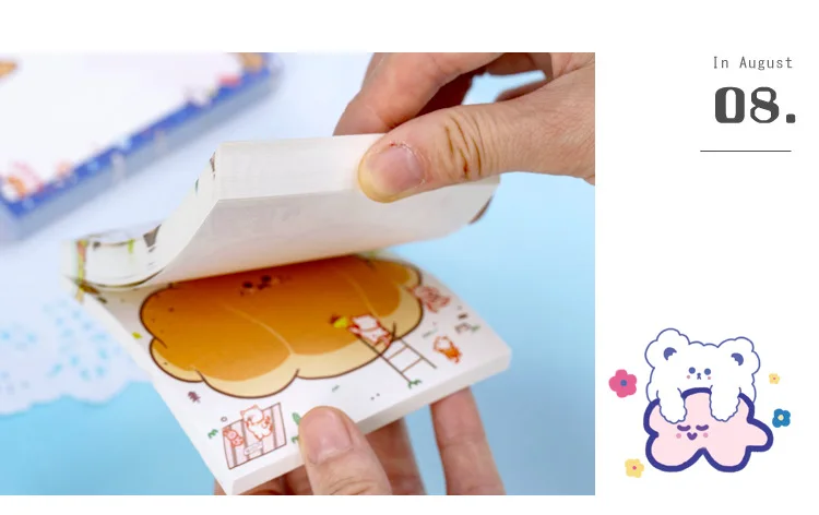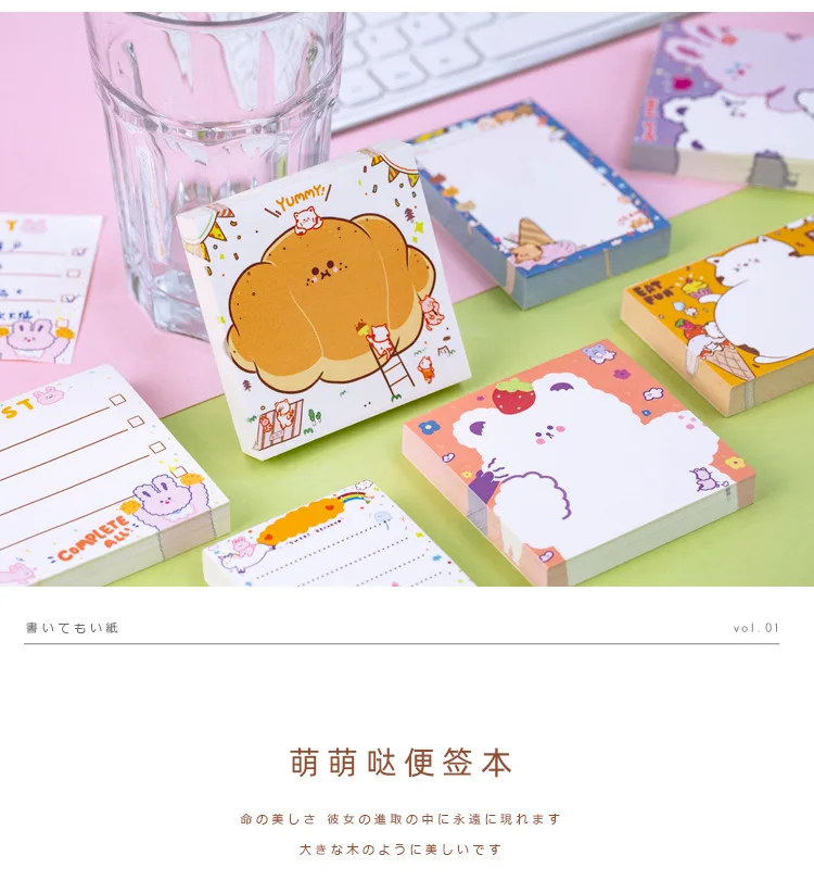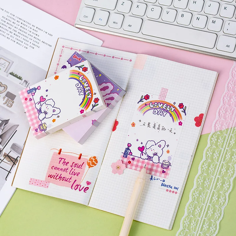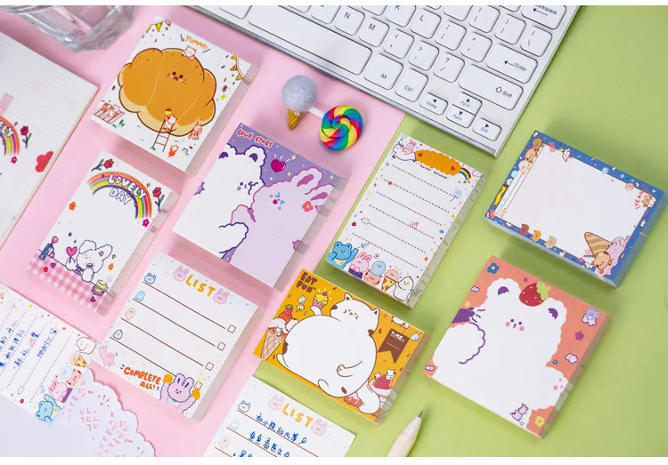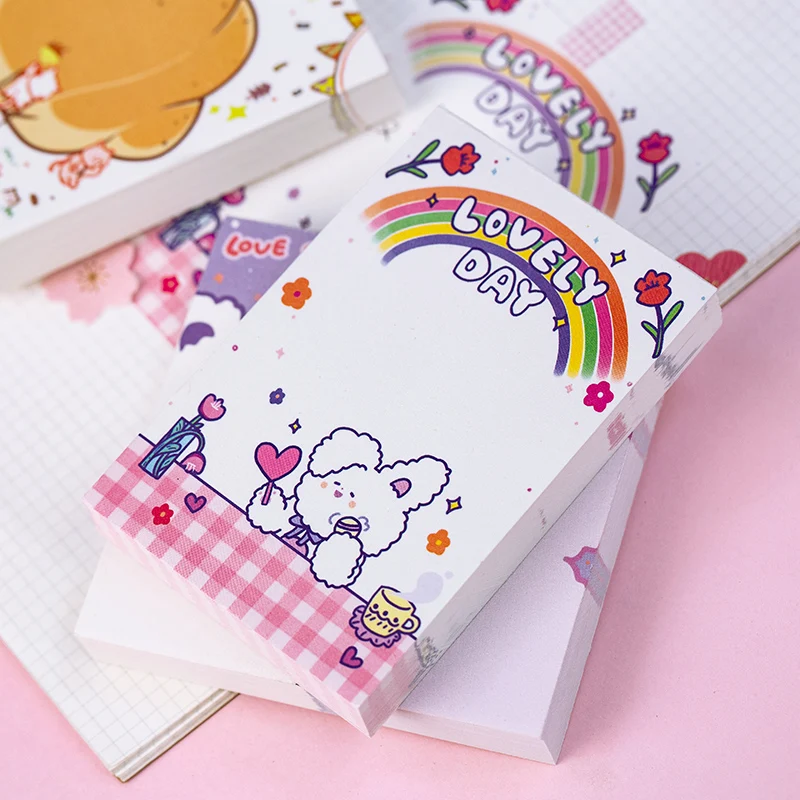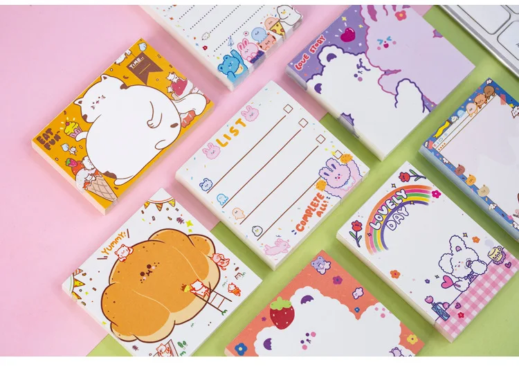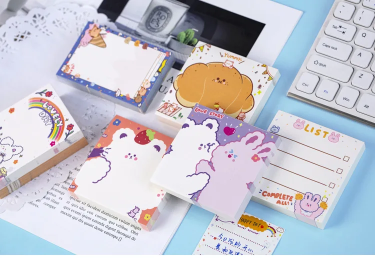 100 листов Kawaii канцелярские принадлежности, клейкий блокнот для девочек с изображением кролика и медведя, ежедневный клейкий блокнот для заметок, школьные принадлежности в Корейском стиле