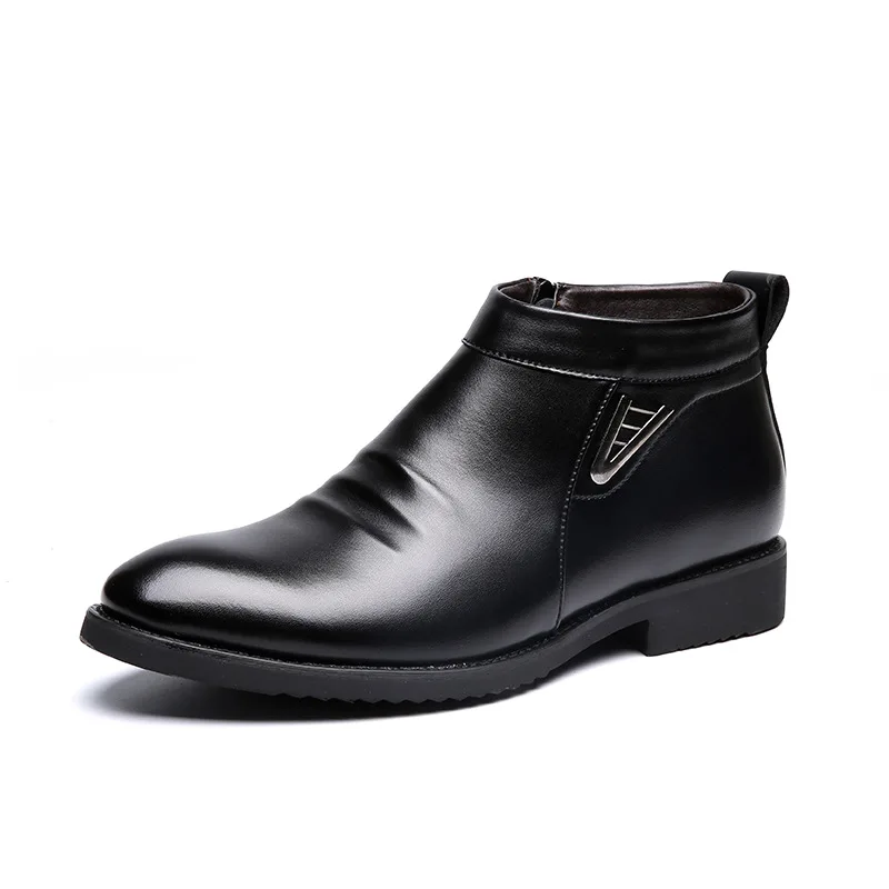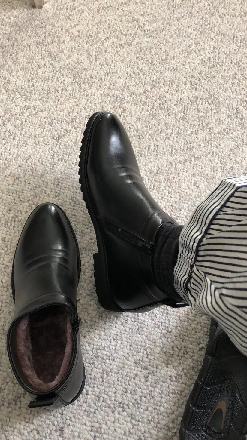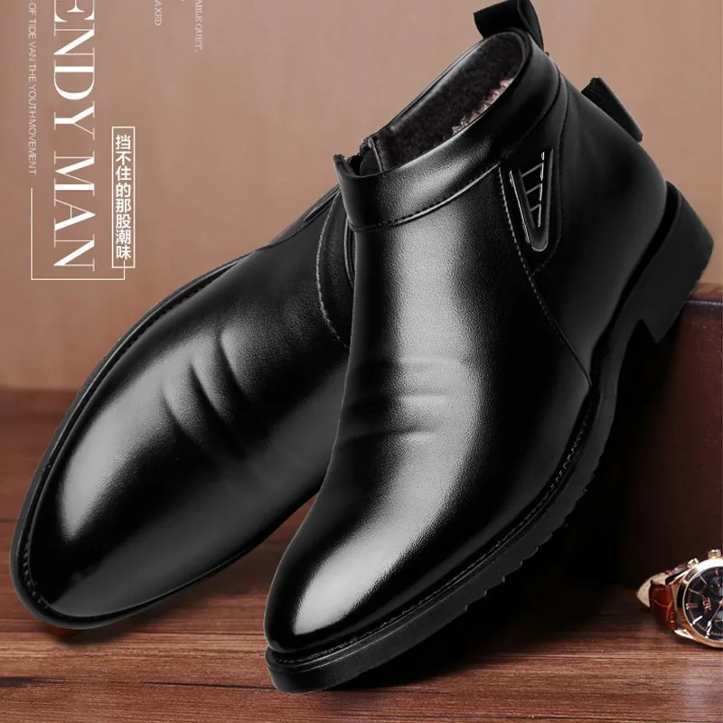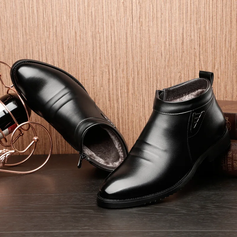 Ботинки Челси мужские в деловом стиле, кожаные ботильоны на молнии, с густым искусственным мехом сбоку, зимняя модельная обувь, rt
