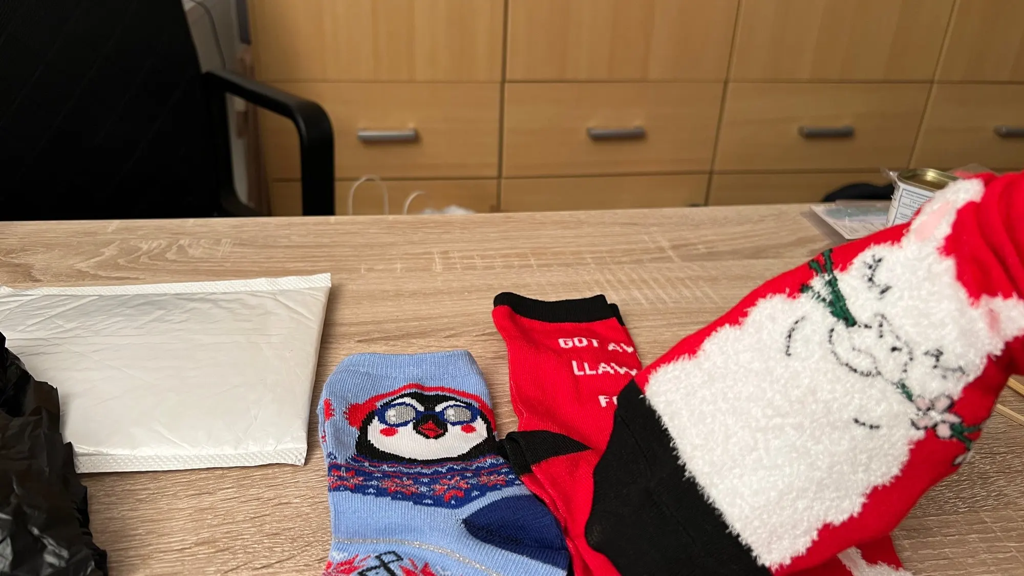 Они прислали еще один рисунок носков. Вместо бабушки мне прислали Санта-Клауса.