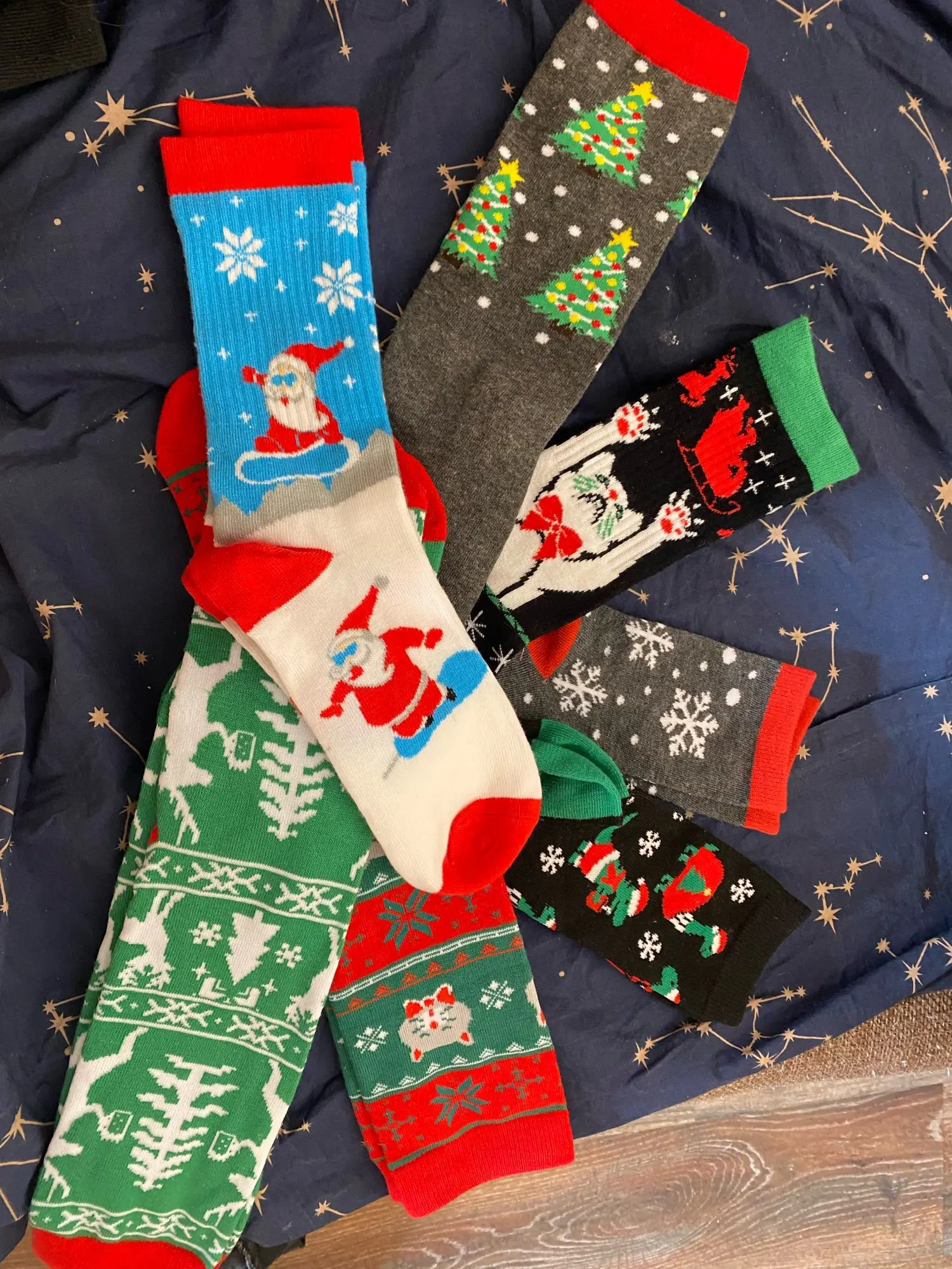 Потрясающие носки! Точный размер, яркие цвета, фотографии показывают их точно, и они идеально подходят для подарков Kris Kringle или в качестве наполнителей для чулок.