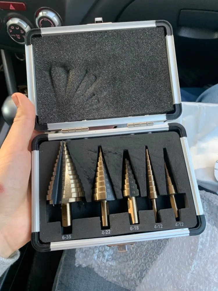 Заказ пришел быстро, кейс целый, сверла отличные, посмотрим скоро проработают.