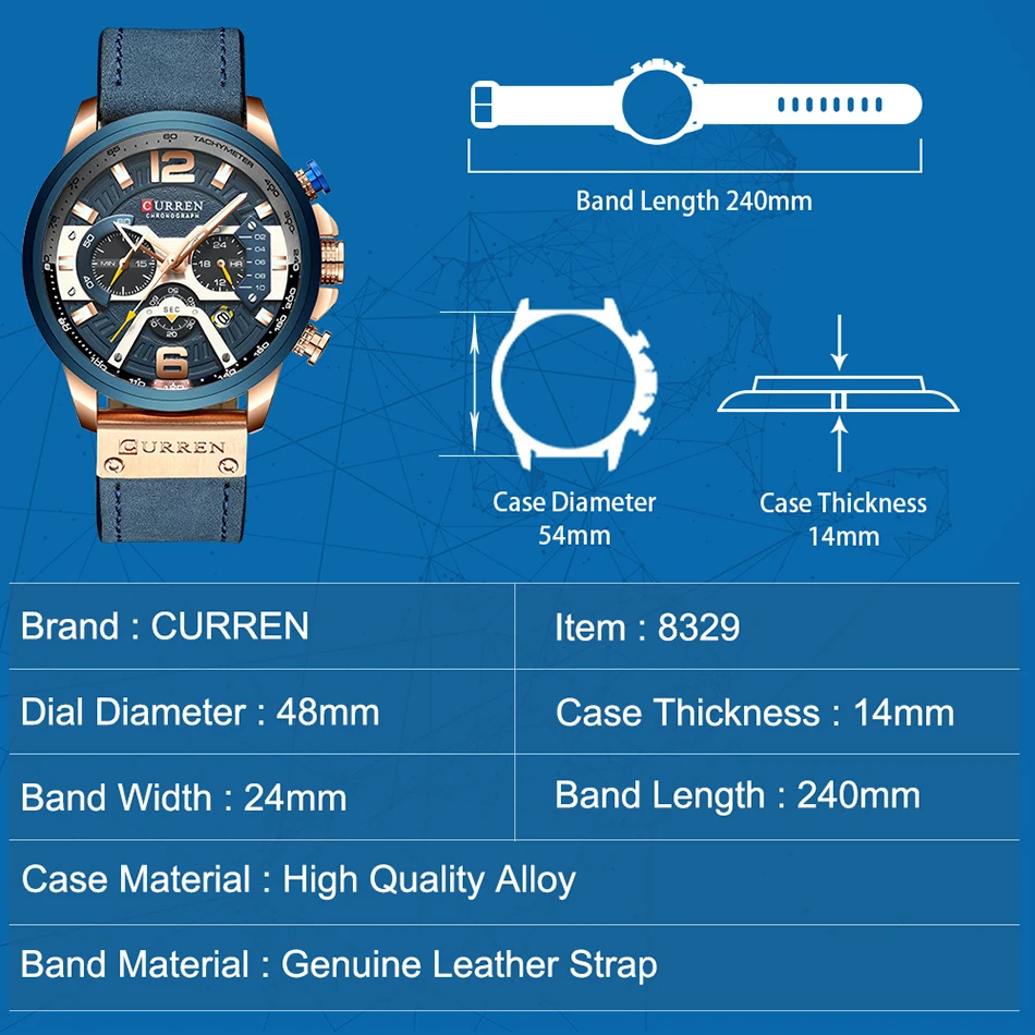 Часы CURREN Мужские, повседневные, спортивные, с ремешком из 8329 кожи
