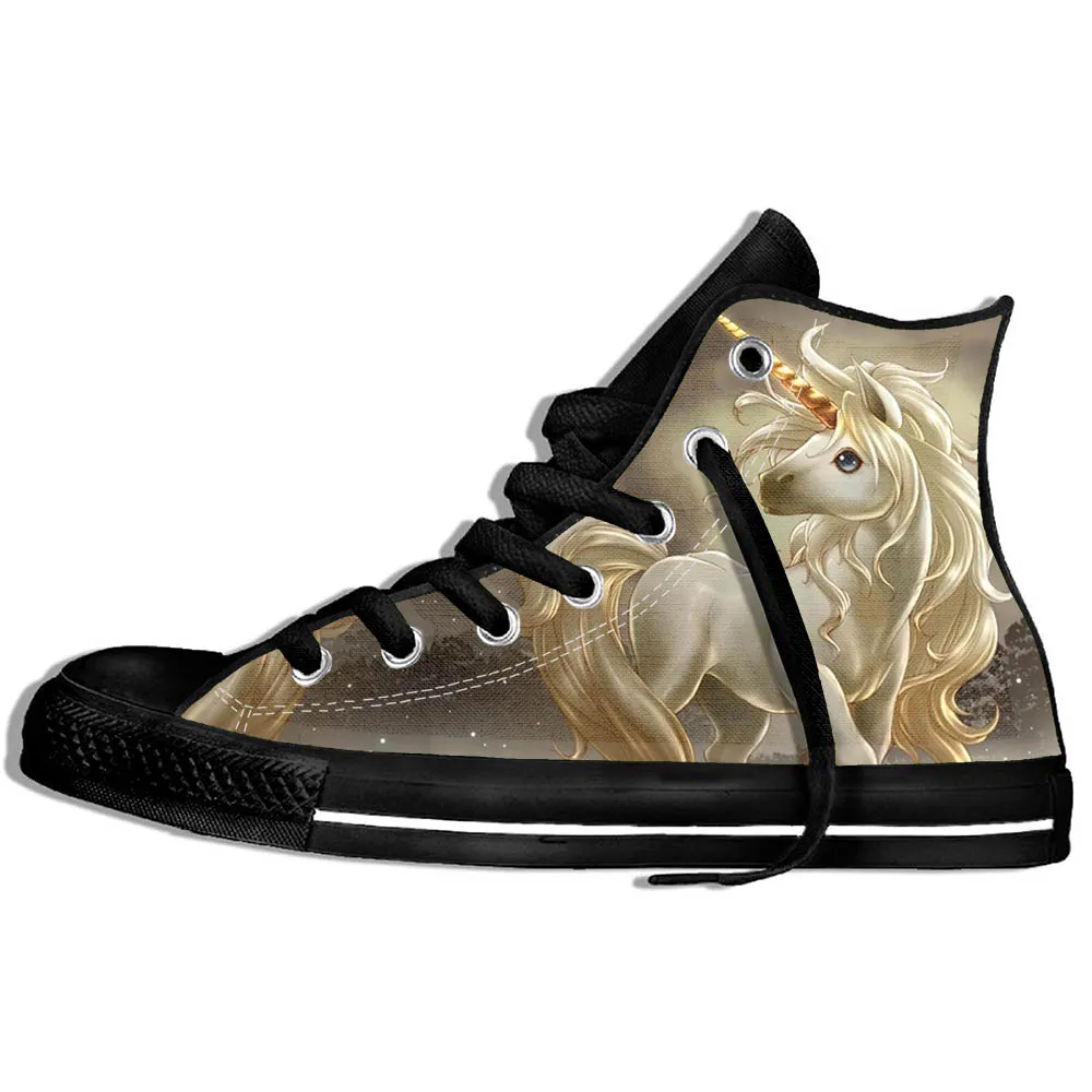 Женская Повседневная обувь; кроссовки с объемным рисунком единорога; Разноцветные лоферы с высоким берцем