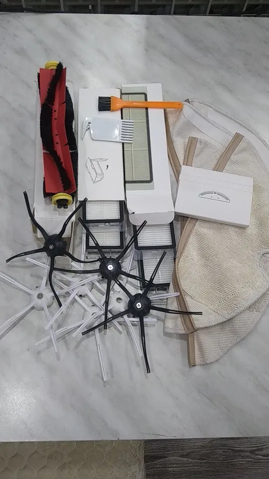 Ype: детали пылесосаВесь комплект предназначен для ремонта или замены поврежденных или старых деталей, чтобы обновить пылесос XIAOMI MI Robot.1 пара HEPA фильтра: рекомендуется заменить 3-6 месяцев. Эффективный HEPA фильтр для Xiaomi Роботизированная Вакуумная очистка уникальный дизайн, легко чистить пыль boxdurable в использовании.1 пара боковых щеток: Практичные боковые щетки для робота-пылесоса Xiaomi. Нейлоновая Щетка, не царапает пол и мебель Уникальный дизайн, легко собрать волосы ABS материал, прочный в использовании.Основная кисть: рекомендуется заменить 6-12 месяцев. Практичная прокатная щетка для роботизированной вакуумной очистки Xiaomi, Глубокая очистка.Цвет: цвет изображенияМатериал: пластикОсновная щётка составляет около 20 см в длину и сетчатого фильтра Размер 16,5*5 см.Упаковочный лист:Боковая щеткаФильтр HEPA