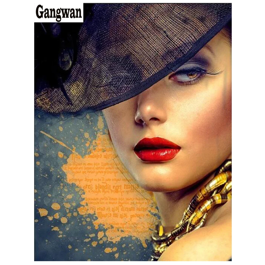 5D DIY Алмазная картина 100% полная квадратная/круглая дрель модная женская 5d diy Алмазная вышивка шляпа красота вышивка крестом 3D декор