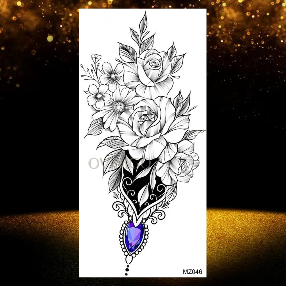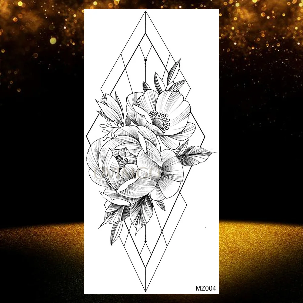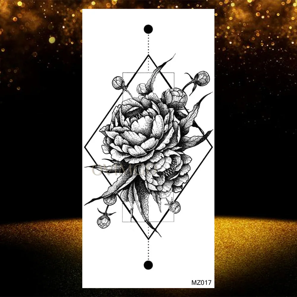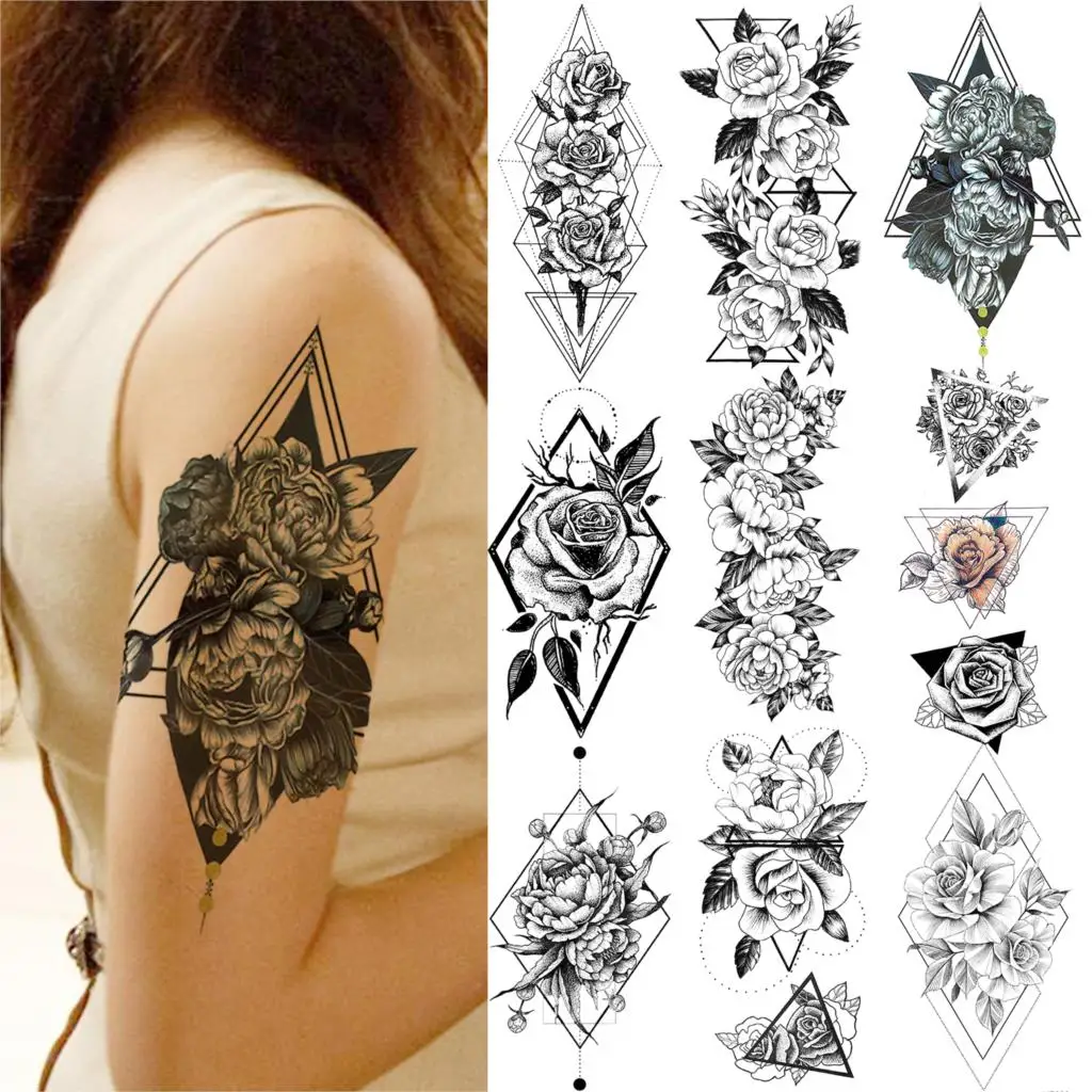OMMGO, 1 шт., Геометрическая Роза, стильные женские Временные татуировки для девочек, переводная вода, большая, 3D, Цветочная татуировка, наклейка на запястье предплечья, Тато