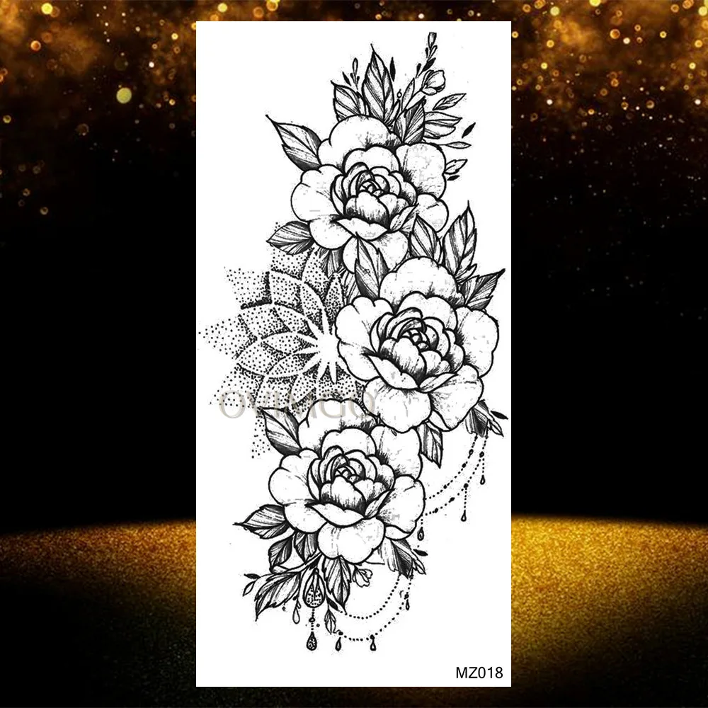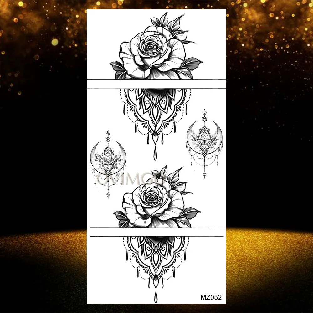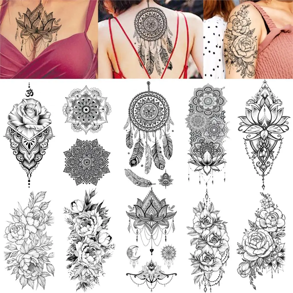 Индийские черные временные тату хной для женщин мандала цветок татуировка с изображением Ловца снов наклейки Кружева Поддельные Драгоценности тело рука арт татуировки