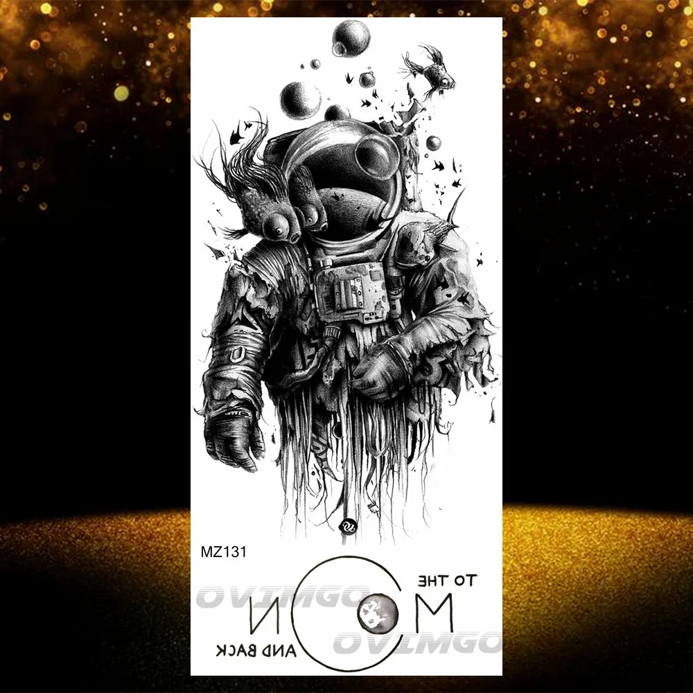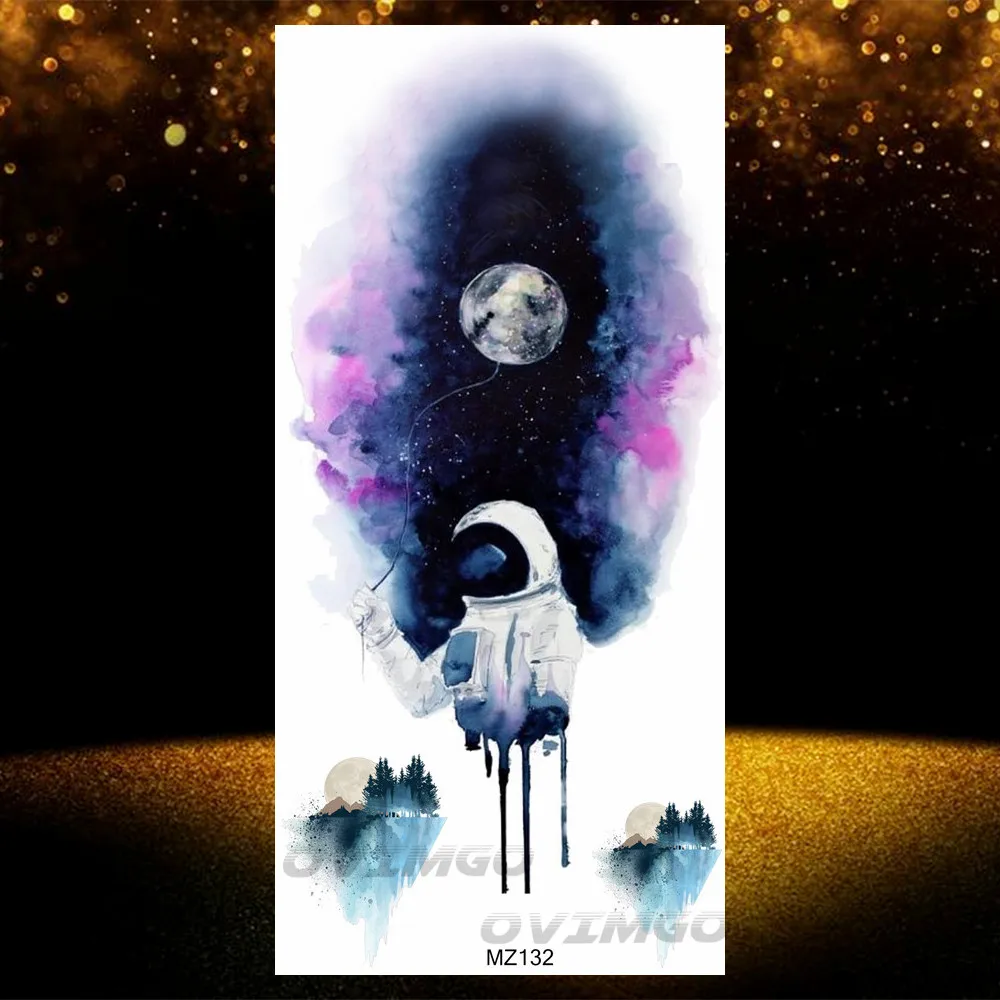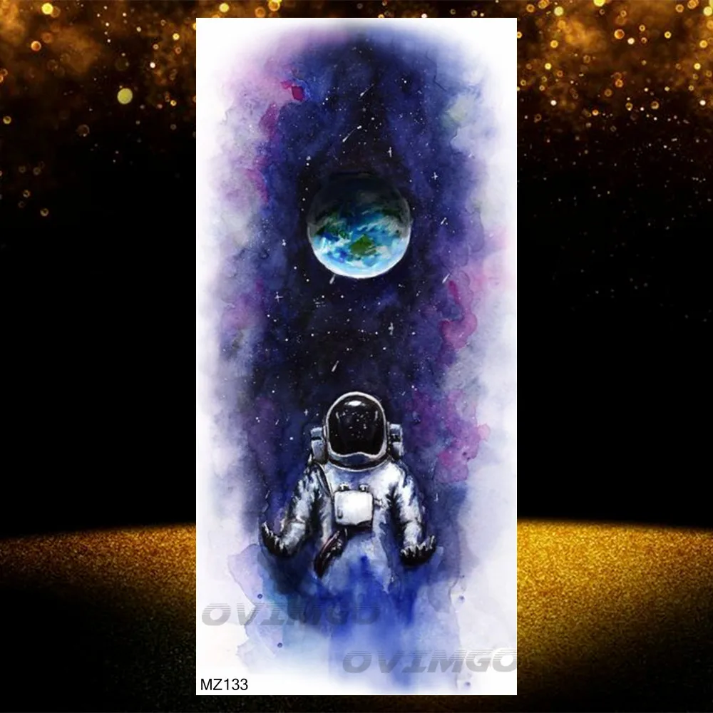 Временные татуировки с акварелью, Галактикой, космонавтом, космосом, мужские, боди-арт, поддельные татуировки, наклейки на предплечье, планеты, мыслитель, татуировки