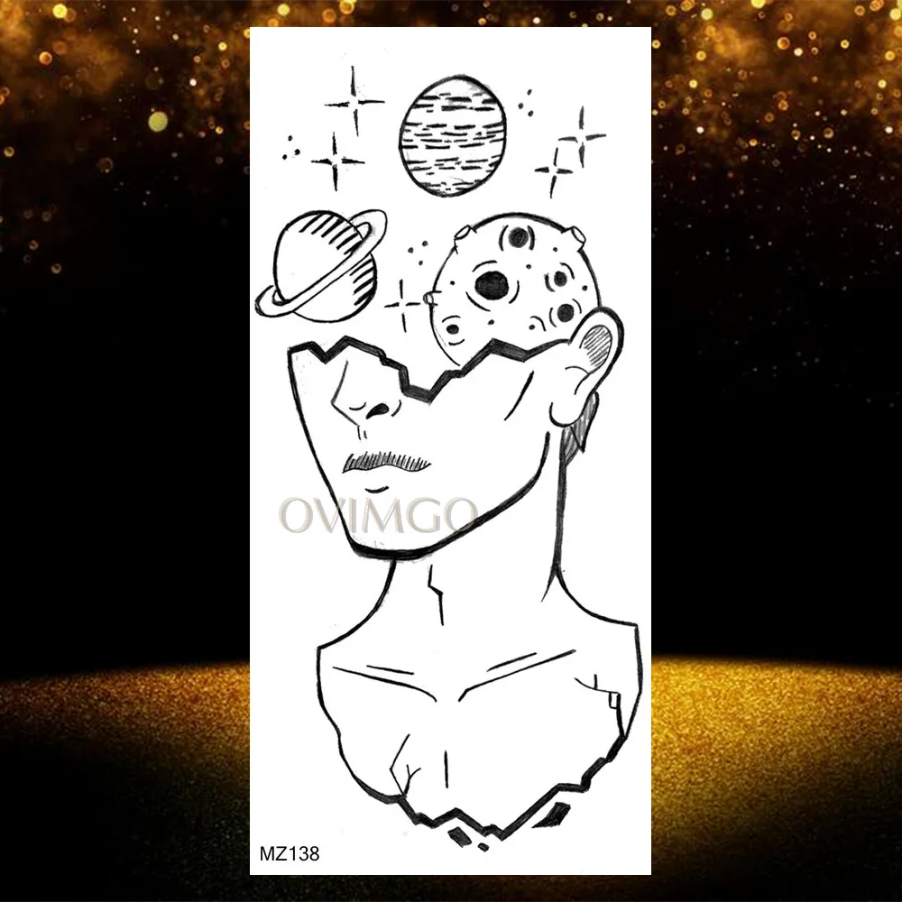 Временная татуировка с лисьим оленем, иллюстрация планеты, Горный цветок, нинималист, искусственная змея, руки, мужские цепи, искусственные драгоценности, тату АК Gun