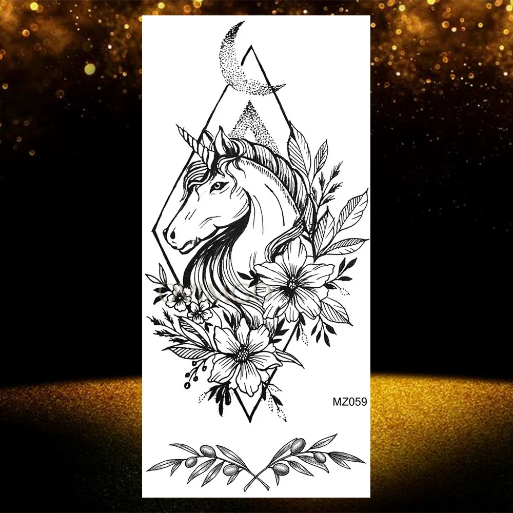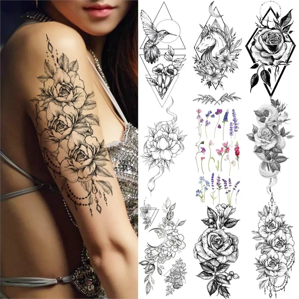 Геометрические временные тату-наклейки с изображением розы, для женщин, тату с единорогом и цветами, сексуальный цветок, водостойкие тату-наклейки со змеей