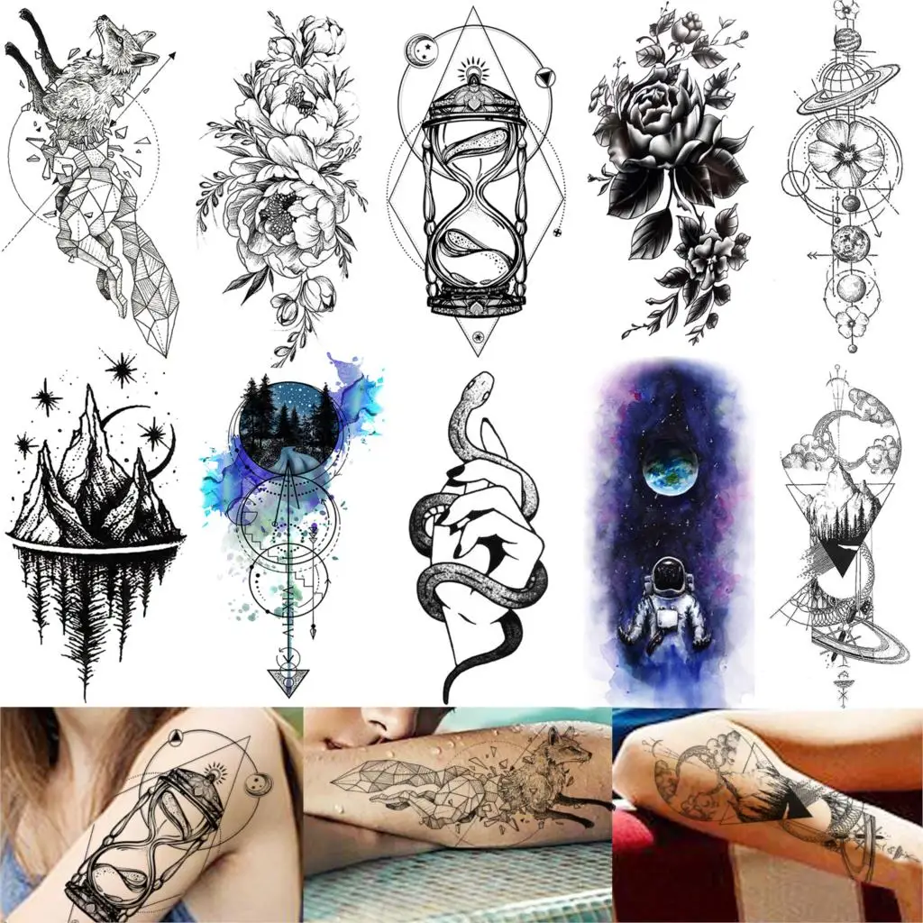 Геометрические стрелы в виде якоря, лисы, горы, искусственные татуировки, наклейки в виде цветов, песочные часы, тату, мужской женский боди-арт, боди-арт для мужчин
