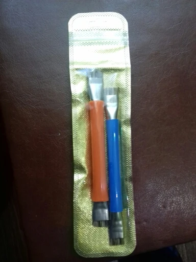 Качественные щетки с жесткой щетиной для чистки плат от флюса. Думал, то щетки отличаются только цветом, но синей используется тонкая термоусадочная трубка, а на оранжевой толстая силиконовая трубка. Могу рекомендовать товар и продавца!