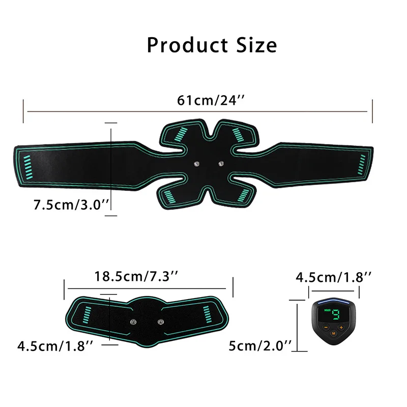 Название: Тренажер для мышцОсновной материал: ПЭТ полимерный гель + полиакриламид + ABS смолаEMS устройства: перезаряжаемый, цифровой дисплейЦвет: зеленый + черныйAdbomen Pad Размеры: 61*7,5 см/24*3,0 дюймовНакладка на тело Размеры: 18,5*4,5 см/7,3*1,8 дюймовКонтроллер Размеры: 4,5*5 см/1,8*2,0 дюймов