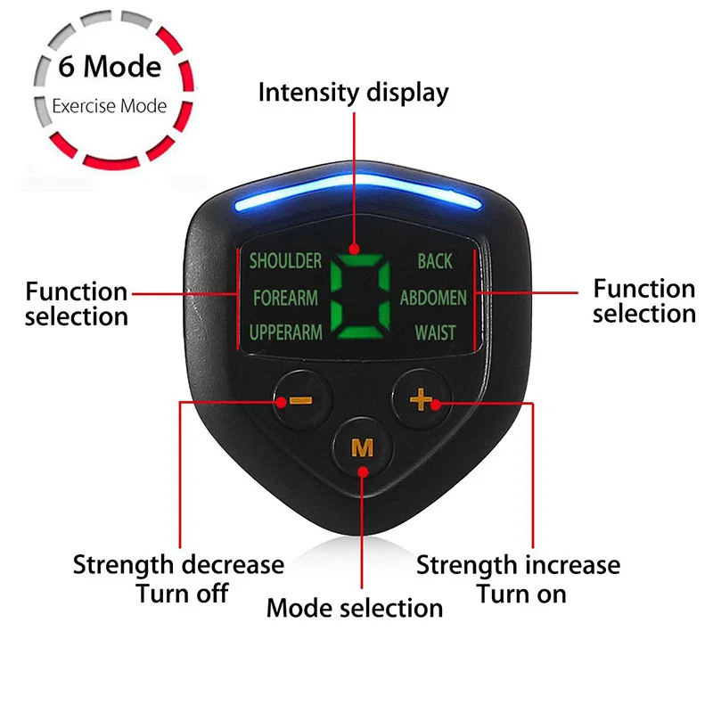1. Поместите изделие на тело, где требуется упражнение.2. Нажмите кнопку, затем начните работу с помощью кнопки «упражнения» с 6 режимами и 9 уровнями интенсивности.3. Вам нужно высушить изделие на салфетке, аккуратно протирая после завершения упражнений.6 режимов:Режим 1 длительное сокращение мышц эффективное анаэробное УпражнениеРежим 2: прерывистая стимуляция мышц на коротком интервале усиливает мышцы во время расслабленияРежим 3 стимулирует мышцы для умеренных сокращений укрепляет мышцы, а также позволяет мышцам расслаблятьсяРежим 4 мышцы подвергались энергичным и анаэробным интенсивным тренировкам с коротким расслаблениемРежим 5 регулярная стимуляция мышц высокой интенсивности, сочетание аэробных и анаэробных упражненийРежим 6 Композитный режим аэробных упражнений, анаэробных упражнений и расслабления мышц