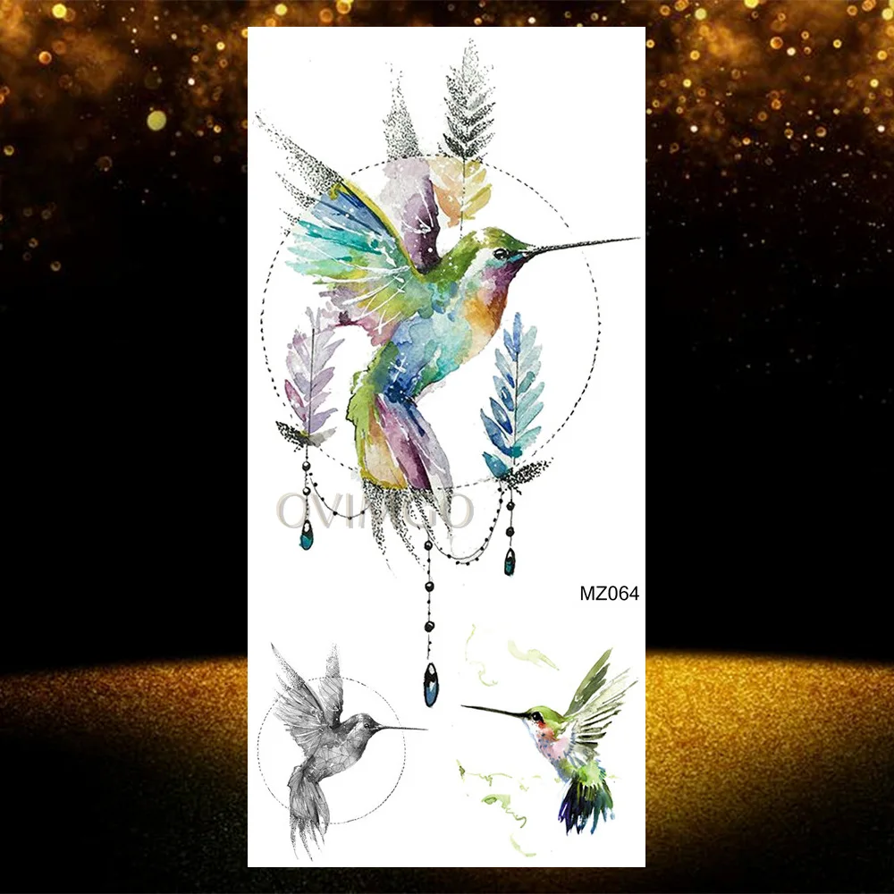 Наклейка-Татуировка Временная водостойкая для женщин, искусственная Колибри, Геометрическая сова, татуировка розовый цветок пиона, боди-арт