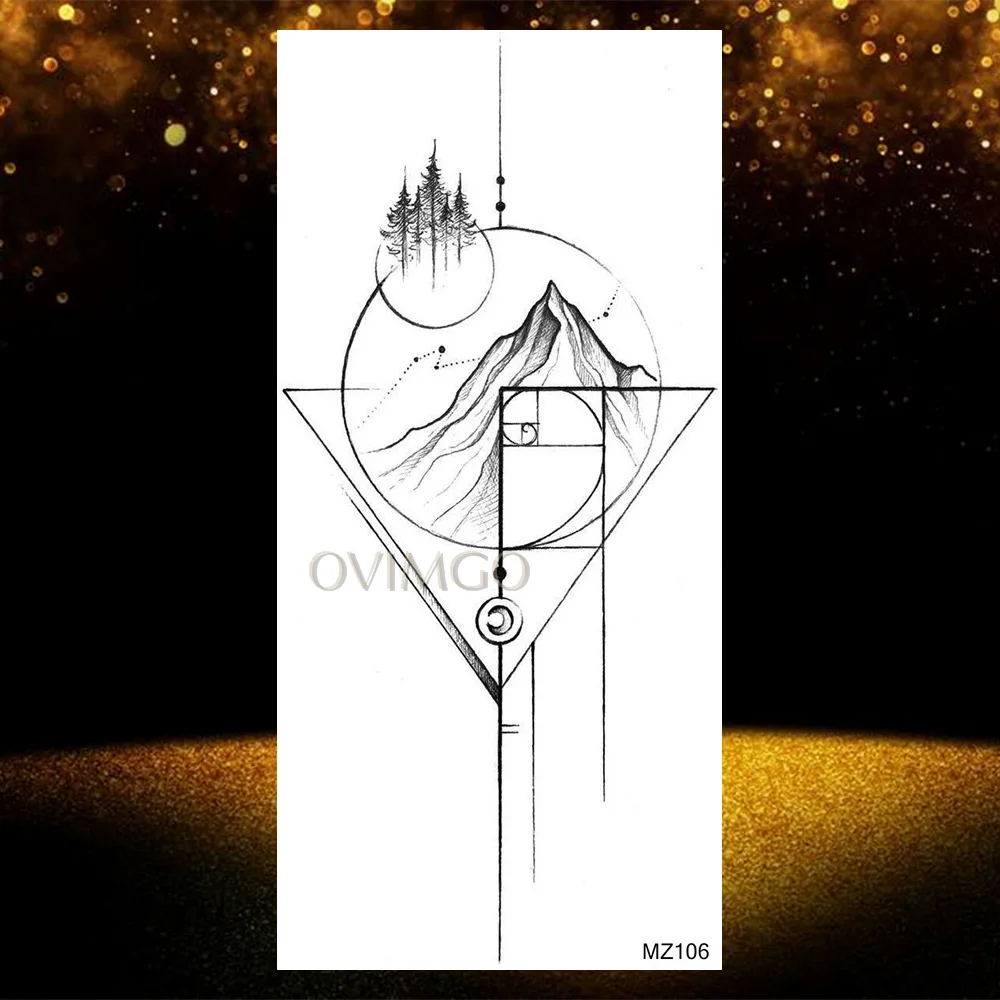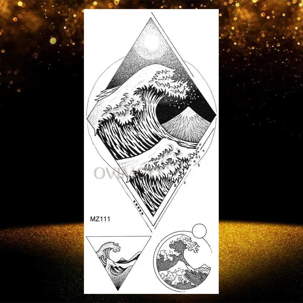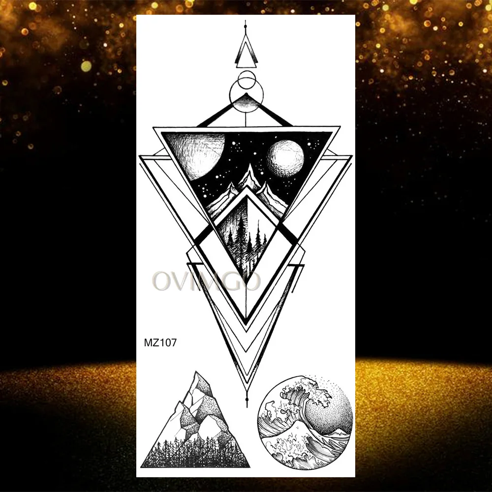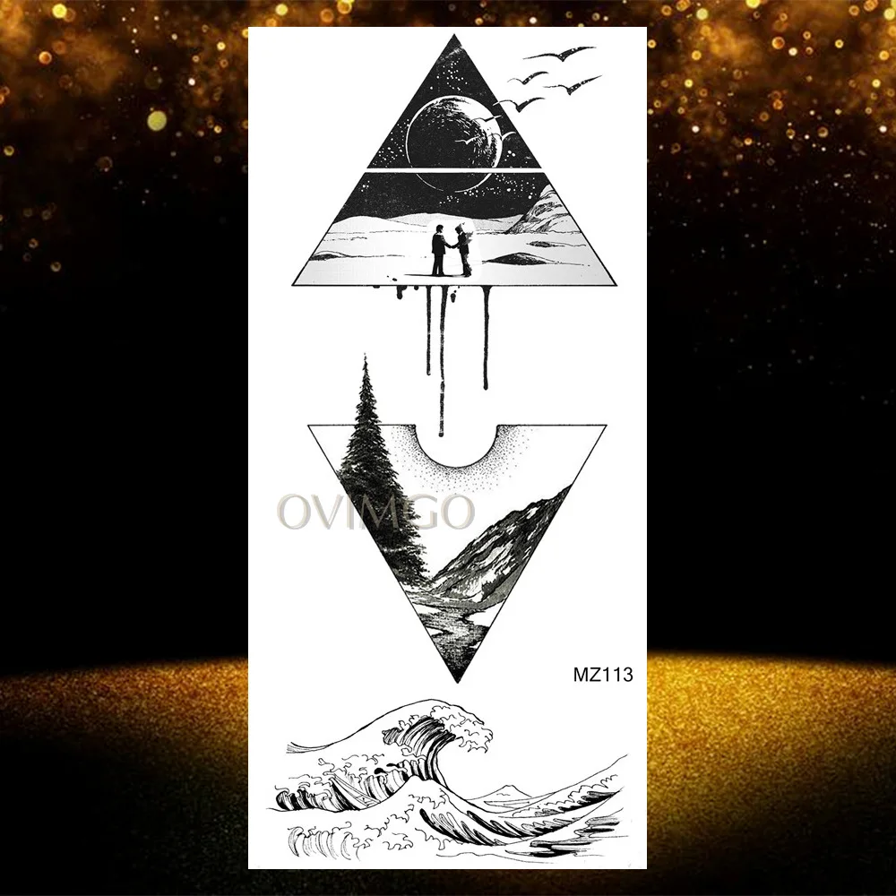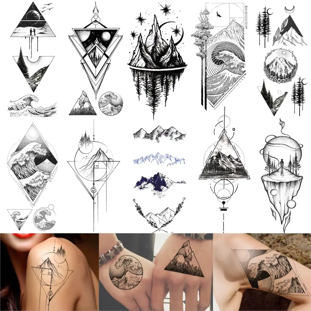 Временные татуировки с горами, треугольные, морские, морские, волнистые, боди-арт, руки и ноги, водные, Переводные, поддельные татуировки, наклейка с изображением леса листов