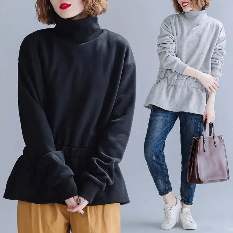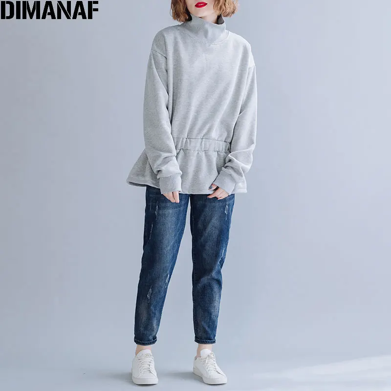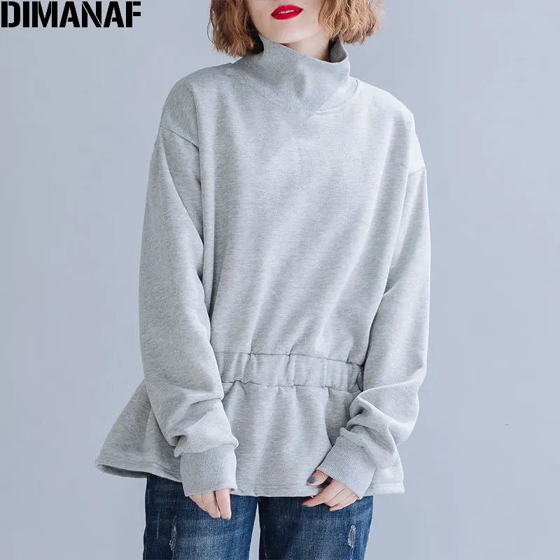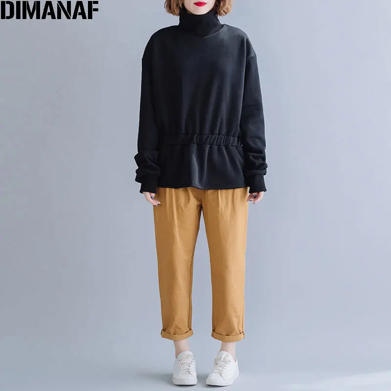 Женская толстовка с воротником-хомутом DIMANAF, однотонный хлопковый пуловер большого размера, толстая Толстая кофта для осени и зимы