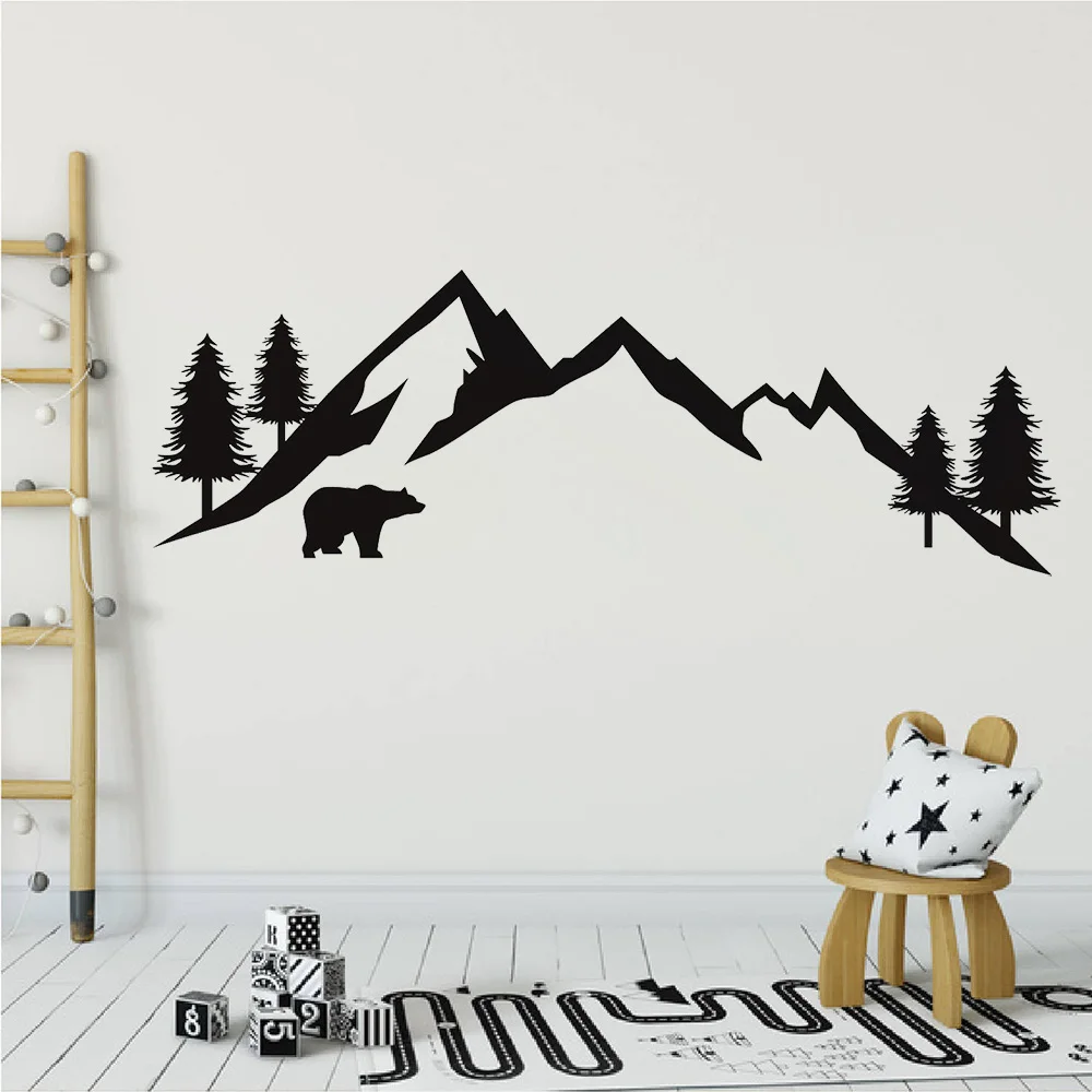 Горы с деревьями и орлами, настенные наклейки, сосновые деревья, го...