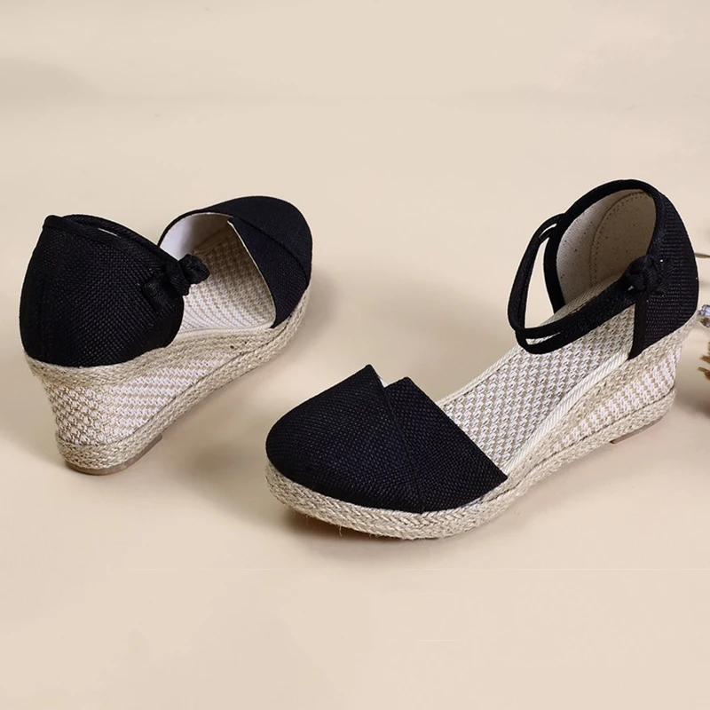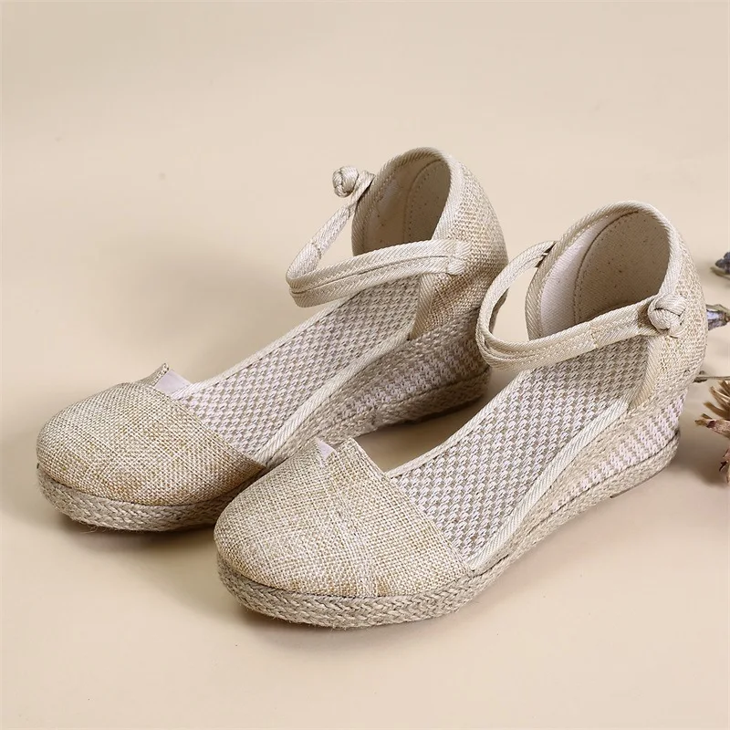 Женские босоножки ручной работы Veowalk, льняные Эспадрильи на платформе 6 см, богемная Повседневная летняя обувь
