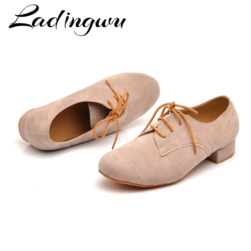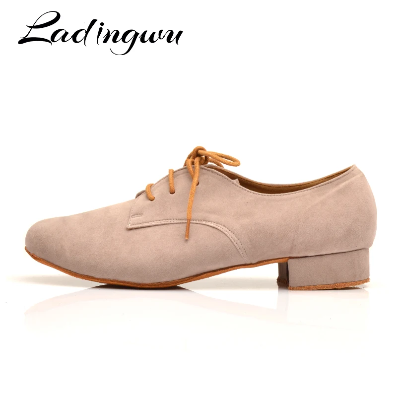 Мужские замшевые туфли для бальных танцев Ladingwu, современные танцевальные туфли на плоской подошве, коричневые вечерние туфли для танго, свадебные туфли на квадратном каблуке
