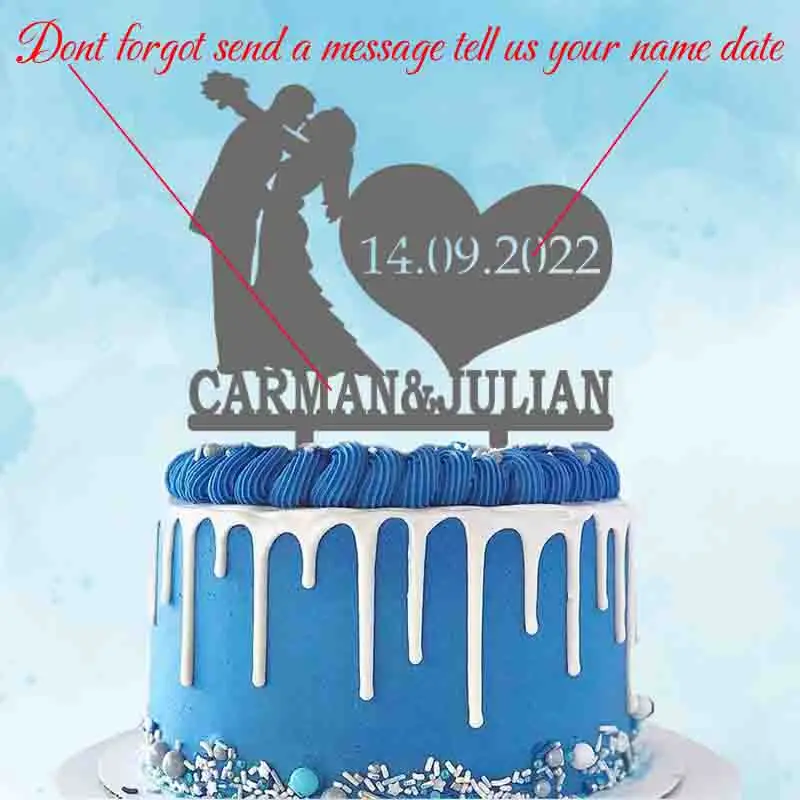 Индивидуальные пары имена Жених и невеста поцелуи силуэт торт Топпе...