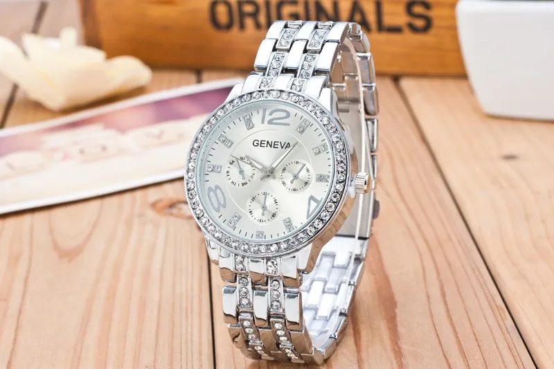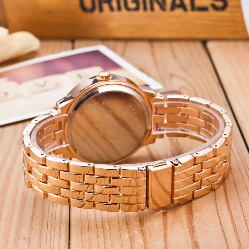 Часы женские кварцевые, из нержавеющей стали, с золотыми кристаллами, 2020