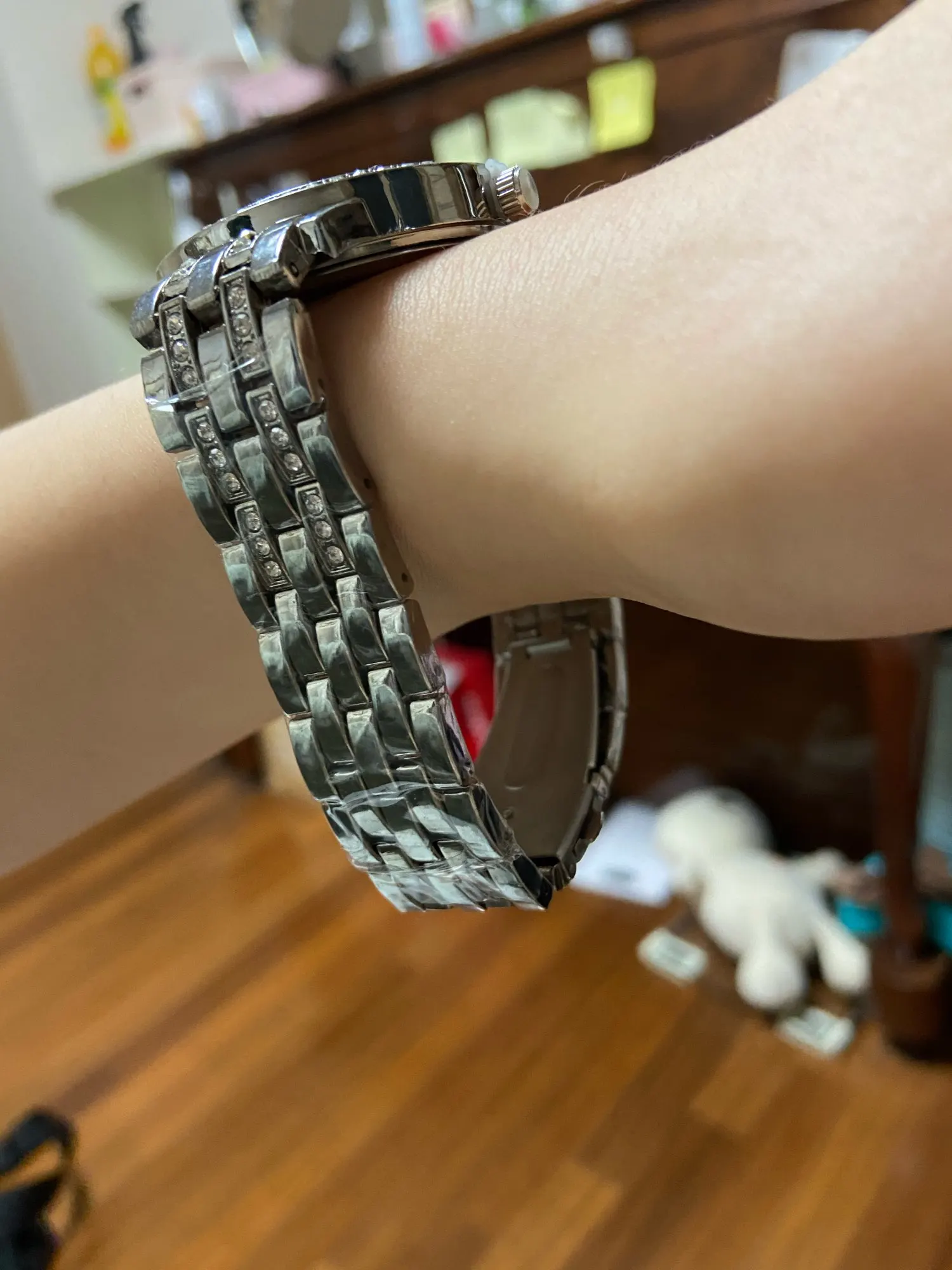 Это мои вторые часы. Первые такая же модель, но в золоте. Первым уже третий год пошёл, они в отличном состоянии, смотрятся, как говорится "по богатому". Камушки не отпали, не почернели, просто звенья снимаете, под размер вашей руки. Они офигенные. Не задумывайтесь. С продавцом не переписывалась