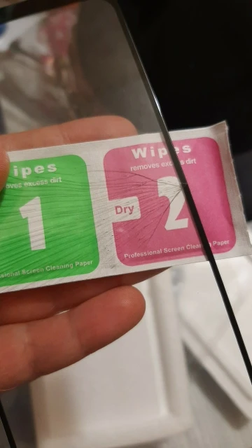стекло идеально подошло по размеру, подозреваю с салфетками проблему: в одной не хватает влажности для обезжиривания поверхности дисплея, стекло встало ровно, но с неисчезающими включениями воздуха.