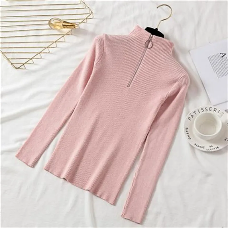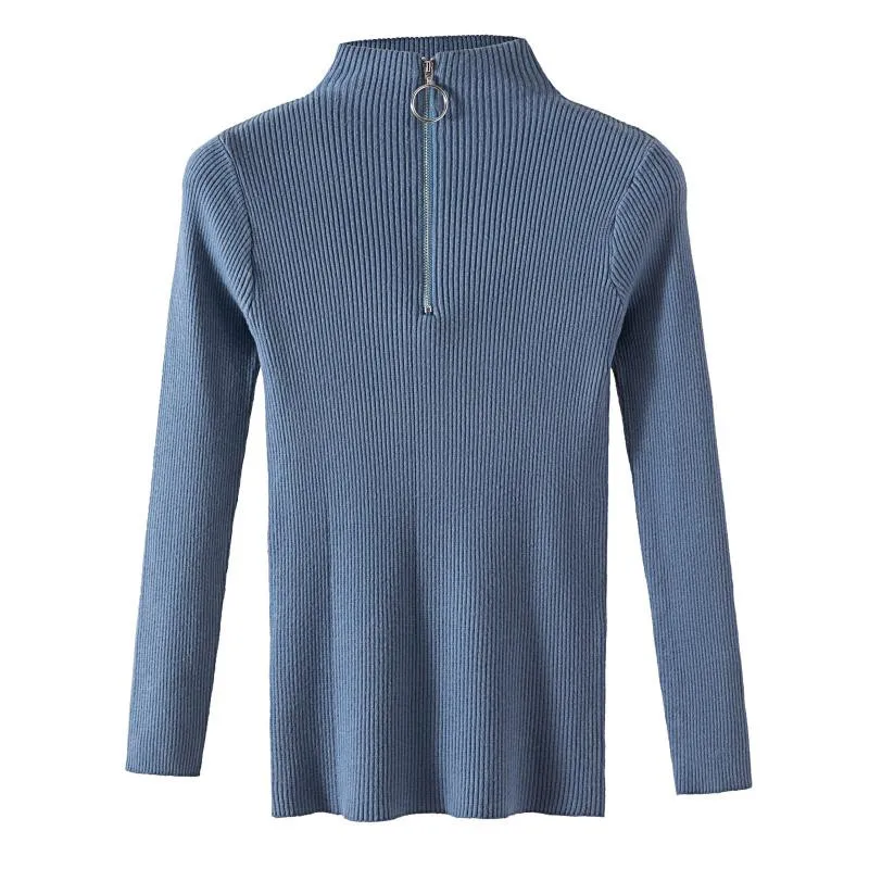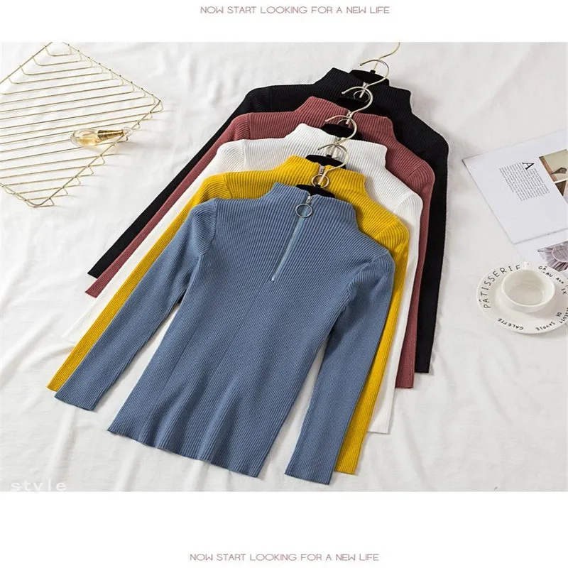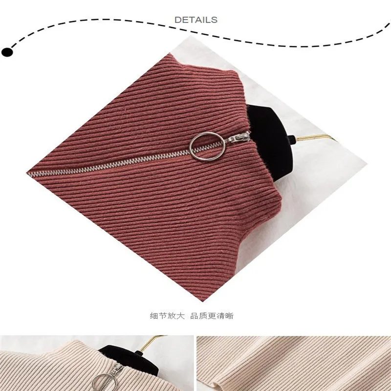 Lucyever Модный женский свитер на молнии с высоким воротником 2021 ...