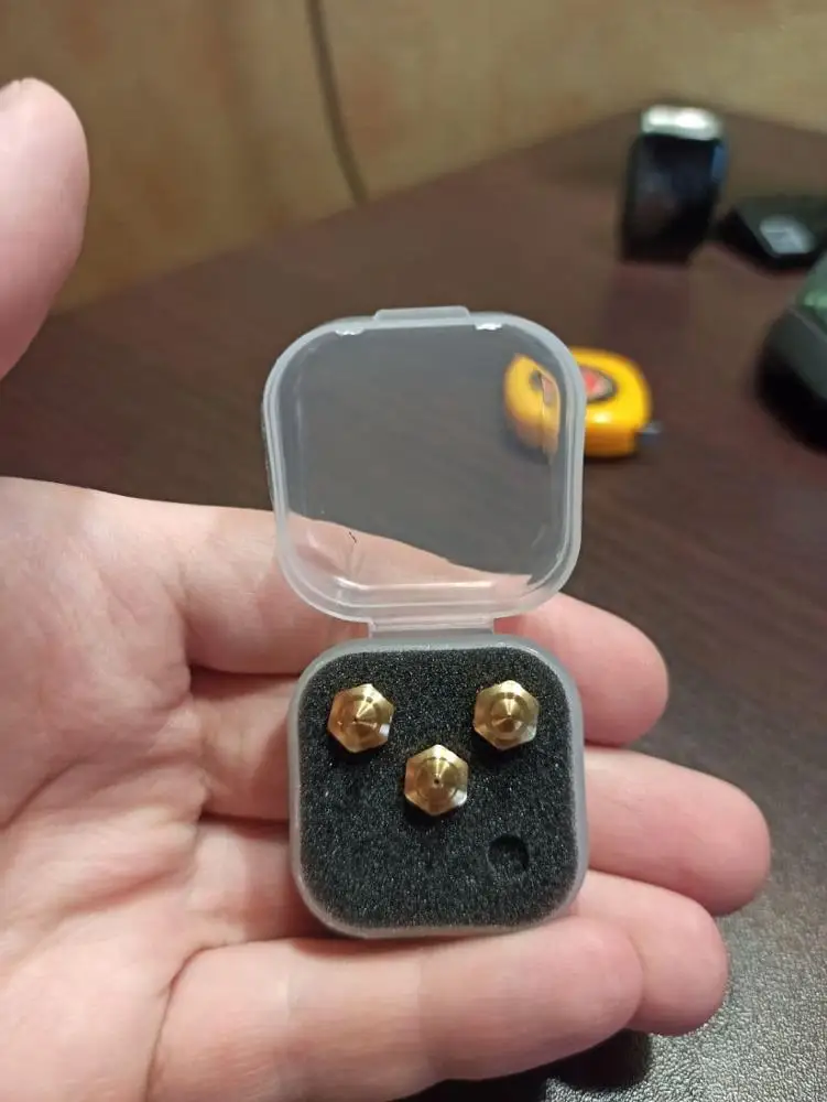 заказ пришел в целости и сохранности. по качеству отличное. сопло без каких либо царапин. проверю на печати. а продавца советую не пожалеете.