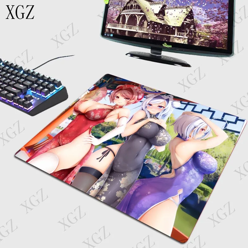 Игровой коврик для мыши XGZ с аниме привлекательной девушкой и большой грудью, компьютерный геймерский коврик, большой игровой коврик с застежкой по краям, Настольный коврик для ПК и ноутбука