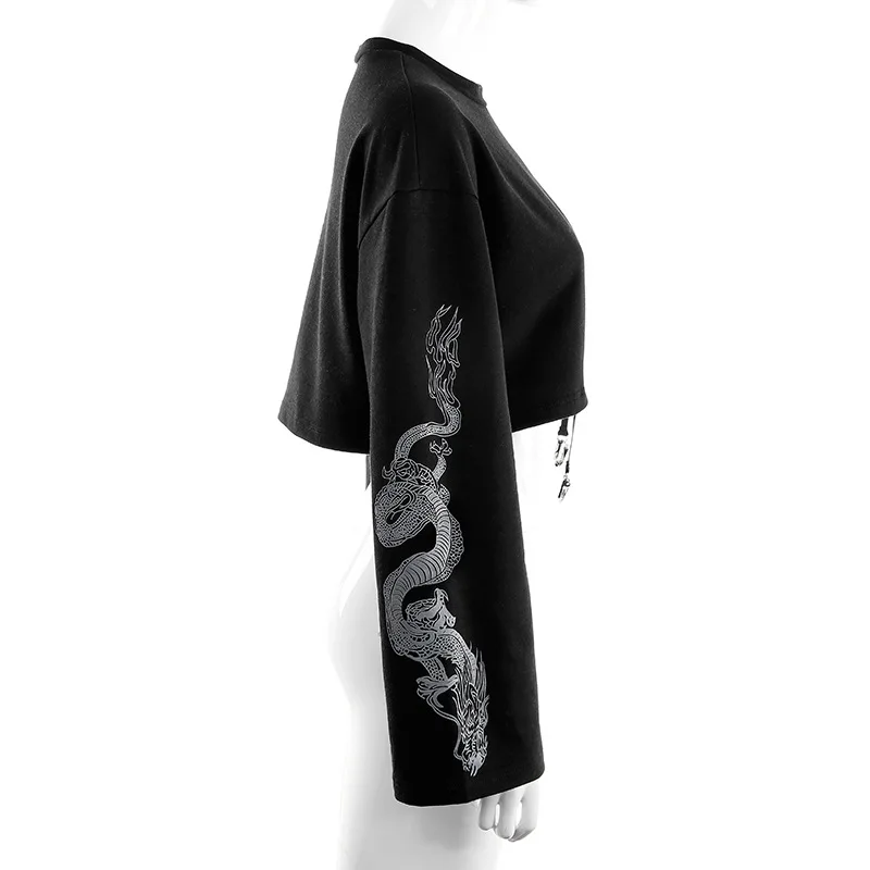 Свитшот женский в готическом стиле с принтом дракона, укороченный топ в стиле Харадзюку, черная хлопковая толстовка, Осень-зима